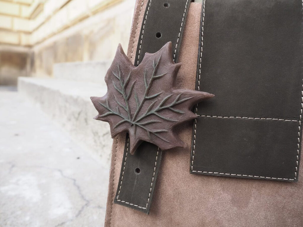 Obuv a doplněk inspirován podzimem s ručně modelovanou podešví a komponentem.