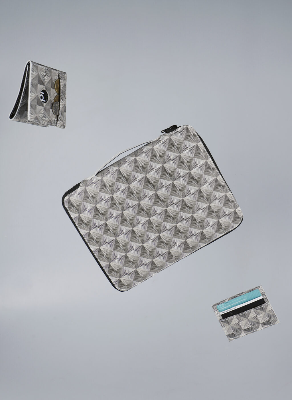Semestrální projekt vznikl ve spolupráci s firmou A.G.D. Print, která se specializuje na tisk na zbytkovou useň z automobilového průmyslu. Při navrhování této kolekce jsme se inspirovali OP-ART – chtěli jsme vytvořit vzory připomínající optické iluze, které zároveň propojují umění s funkčností každodenních doplňků. Výsledkem jsou jedinečné textury a nekonečné vzory, které hrají s vizuálním vnímáním a dodávají výrobkům dynamiku a originalitu. Kolekce zahrnuje obal na tablet, peněženku, vizitkář a klíčenku, což ukazuje propojení estetiky a praktičnosti. Kolekce klade důraz na kontrast a geometrické tvary, které podtrhují čistý a minimalistický design. Na projektu se podíleli Mikuláš Crla, Tadeáš Zouhar, Vít Šimon Andrášek a Patrik Stašek.