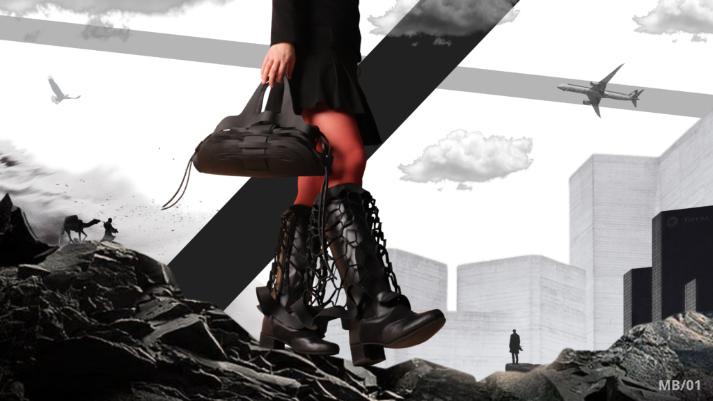 Na obuv navazuje variabilní kabelka, jejíž konstrukční řešení vychází z konceptu „nomádství“ – pohybu a svobody. Hlavním přínosem je schopnost transformace objemu; díky specifickému střihu lze tělo kabelky rozšířit až na dvojnásobek původní velikosti. Objekt se skládá ze dvou samostatně využitelných částí: nosného koženého těla a vnitřní textilní podšívky, kterou lze nosit jako samostatný vak.