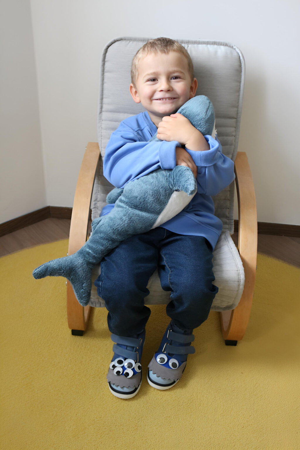 Dětská obuv inspirovaná tvarem a estetikou žraloka. Přední část bot je navržena s prvky suchého zipu, které umožňují upevnění očních aplikací. Dítě si tak může s botami hrát, měnit jejich výraz a rozvíjet svou fantazii i jemnou motoriku. Projekt propojuje funkčnost s hravostí a ukazuje, že i každodenní předmět může být zdrojem tvořivosti a zábavy.
