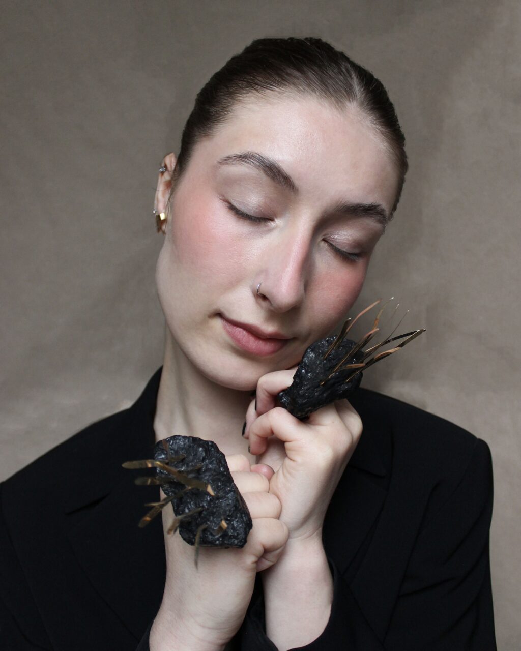 Sada šperků na téma Natura se skládá ze dvou prstenů a jednoho náhrdelníkového přívěsku. Kolekce zkoumá vztahy mezi živým a neživým prostředím a sleduje, jak si příroda bere zpět to, co jí bylo odebráno a jak dokáže své neživé části znovu probudit k životu.