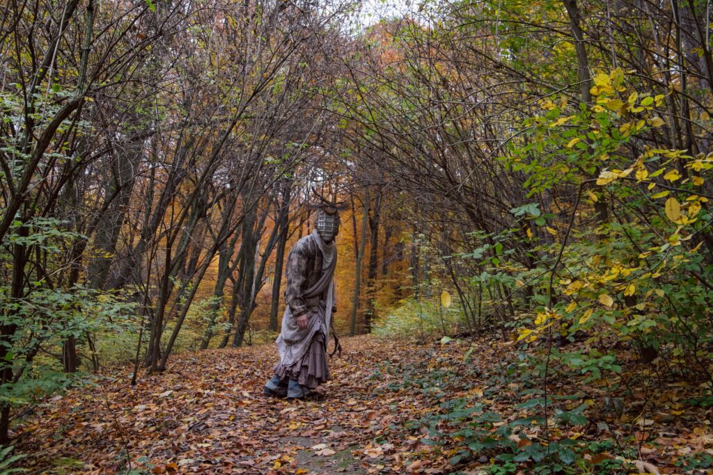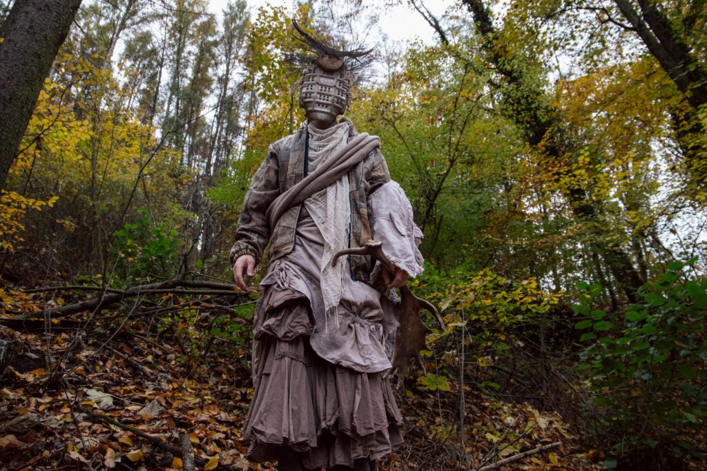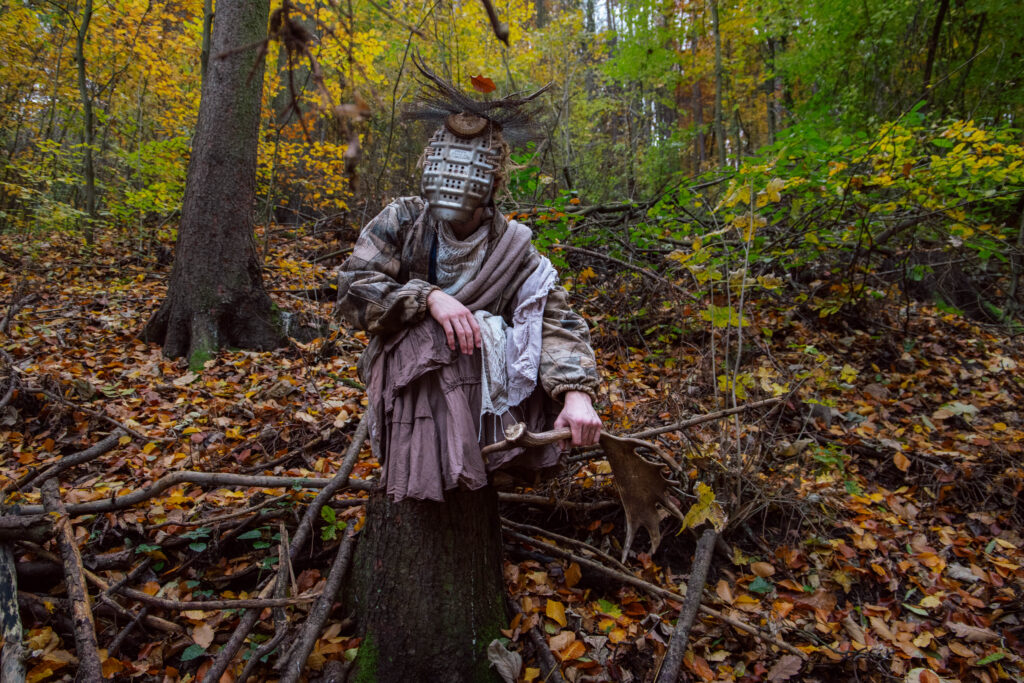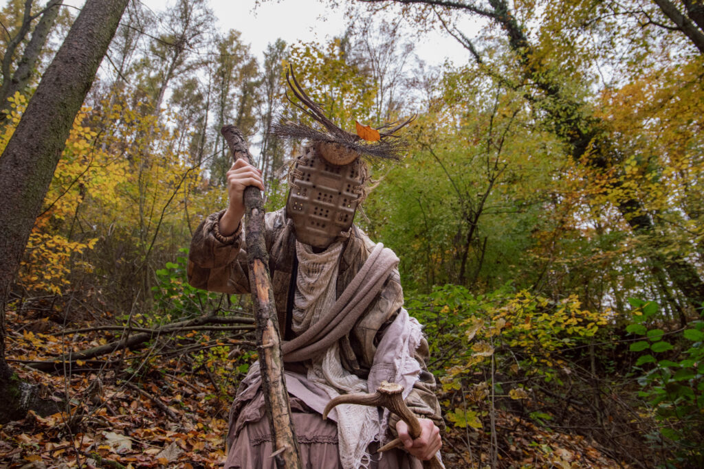 Nonnus stojí na prahu medzi svetlom a tieňom, medzi divokou zverou a človekom. Udržiava rovnováhu – duše pokorných chráni, sprevádza ich svojou silou a odolnosťou. Tých s nečistými úmyslami zatracuje. S pevným štítom a majestátnym parožím bdie nad lesom, kde sa stráca chamtivosť a rodí pravda. Maska vyrobená kombináciou odpadového a prírodného materiálu.