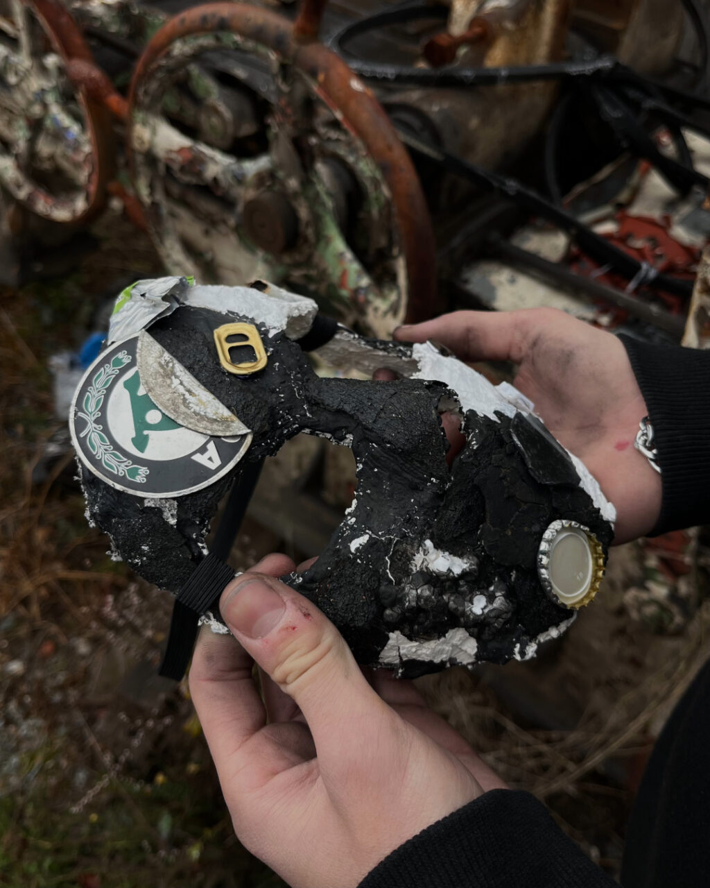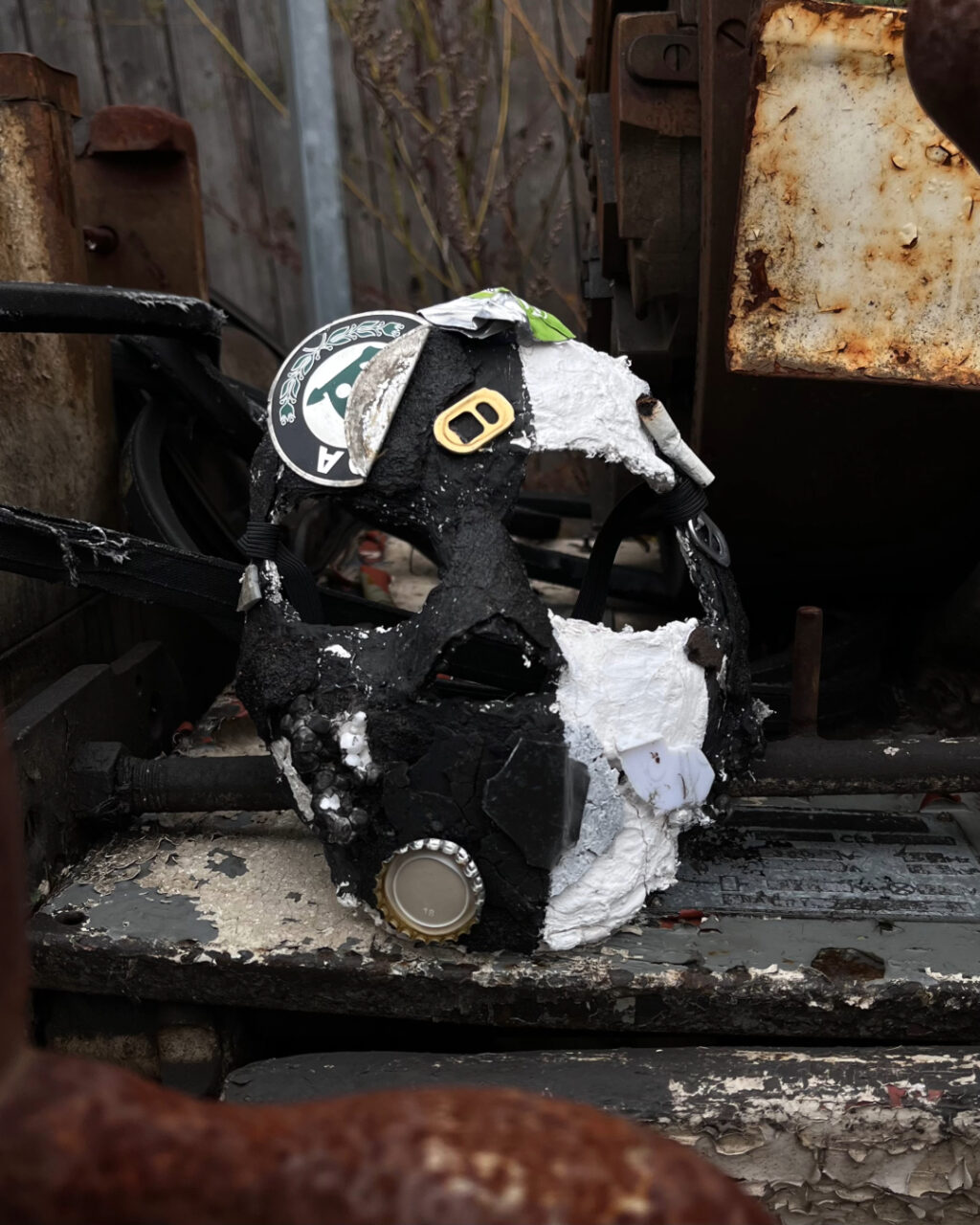 Maska z asfaltu a odpadků je metaforou českých silnic i řidičů. Tvrdý, ale křehký materiál symbolizuje anonymitu za volantem, tváříme se pevně, ale pod povrchem se skrývá nervozita a spěch. Odpadky v masce odkazují na bezohlednost, která zůstává podél cest a tvoří obraz prostředí, kde chybí ohleduplnost. Silnice tak nejsou jen cestou mezi městy, ale i zrcadlem společnosti, které odhaluje, jak spolu dokážeme, nebo nedokážeme, fungovat.