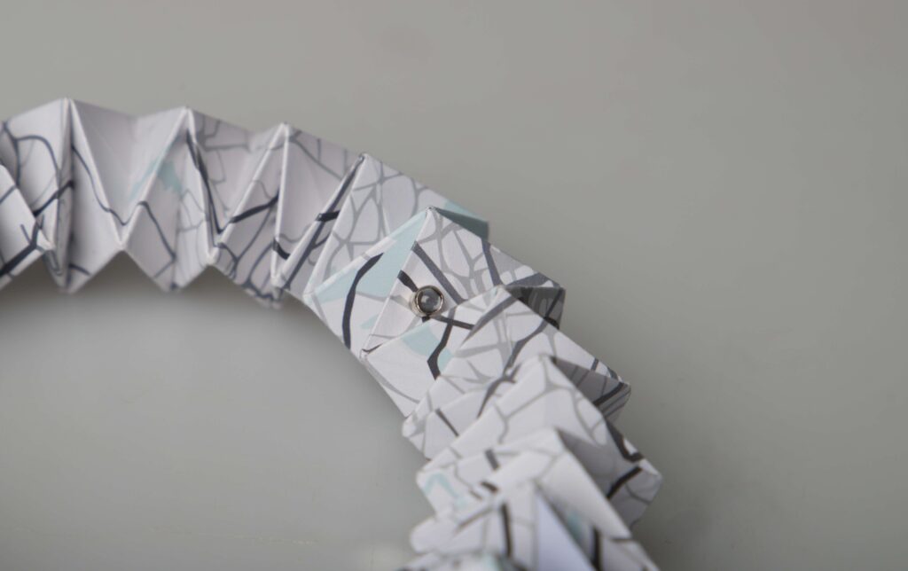 Tyto body představují mosazné komponenty s vsazenými topazy, které jsou detaily na papírovém náhrdelníku. Pro samotné papírové šperky jsou využity dva odlišné typy skládání a dva typy grafických map. Šperky jsou zakončeny mosaznými komponenty, které využívají dva tipy zapínání, háček s očkem a magnety.