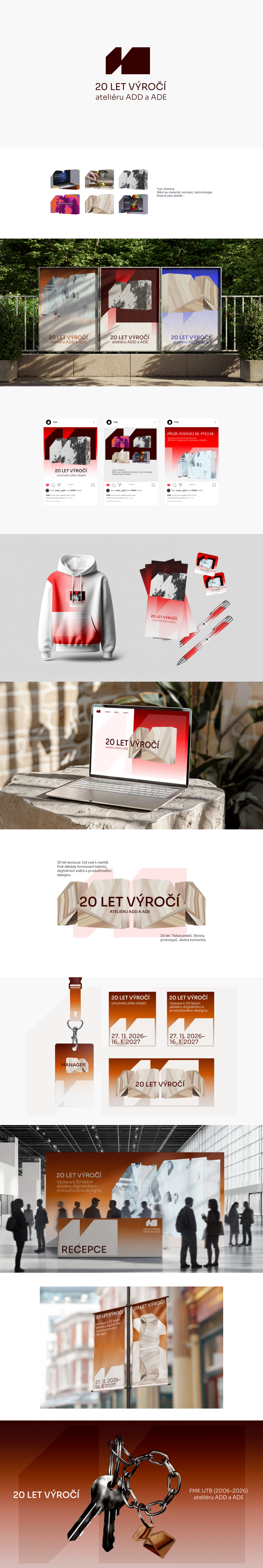 Projekt výstavy k 20 letům ateliéru digitálního a produktového designu reflektuje dlouholetou tradici inovací, kreativity a technologického pokroku. Navržený vizuální styl spojuje moderní a funkční prvky s historickým vývojem oboru, čímž odráží evoluci a současné trendy. Tvar a materiály loga dynamicky reprezentují propojení digitálního a produktového designu. Výstava bude nejen oslavou, ale i prostor pro budoucí výzvy a inspiraci pro novou generaci designérů.