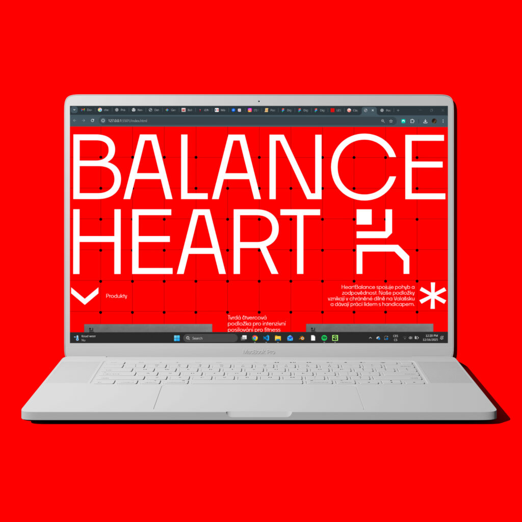 Zadání pro BalanceHeart bylo unikátní svým požadavkem prezentovat pouze dva produkty. Proto jsem k návrhu přistoupil s radikálním minimalismem, a to jak v navigaci, tak po vizuální stránce. Místo klasického e-shopového rozložení jsem využil grid systém, který drží strukturu celého webu, a doplnil ho o agresivní typografii a interaktivní 3D modely. Výsledkem je přímočarý web, který uživatele bez zbytečného rozptylování okamžitě směruje k nákupu.