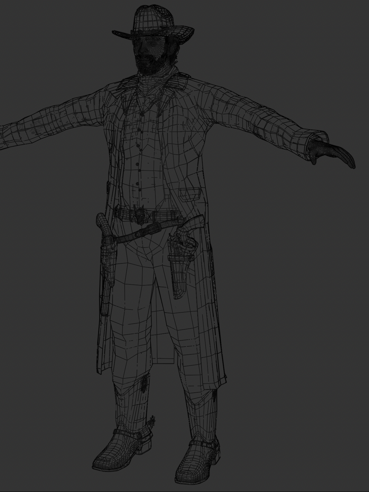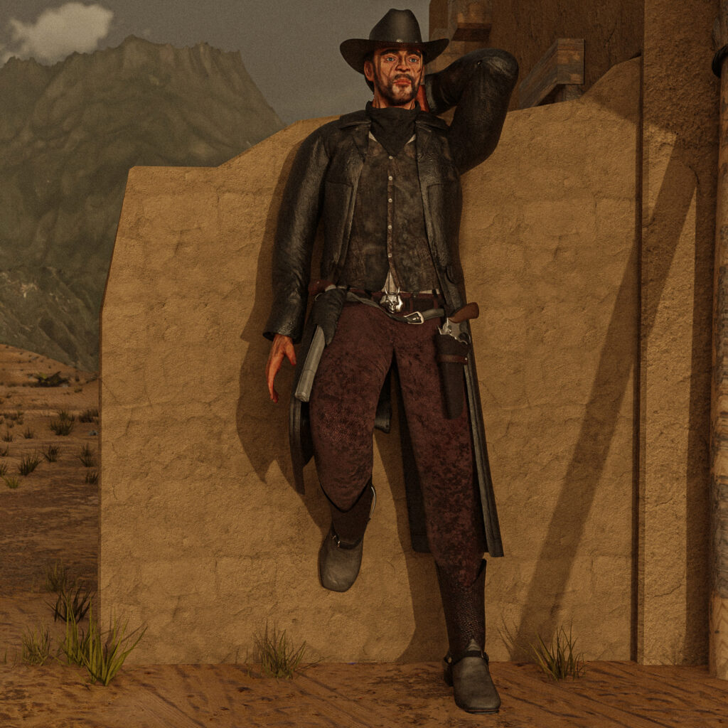 Cvičení modelování, texturování a pečení v Blenderu a Substance Painteru. Hlavním cílem bylo si vyzkoušet práci s Substance Painterem a vytvořit detailní a dobře optimalizovanou postavu kovboje.