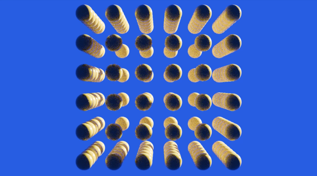 Krátké video vytvořené pomocí geometry nodes v blenderu. Cílem bylo náhodně manipulovat s různými parametry a vytvořit z toho animaci s tímto nástrojem za použití geometrických tvarů. Animace přechází v segmentech z chaosu do geometrie a zase zpátky…