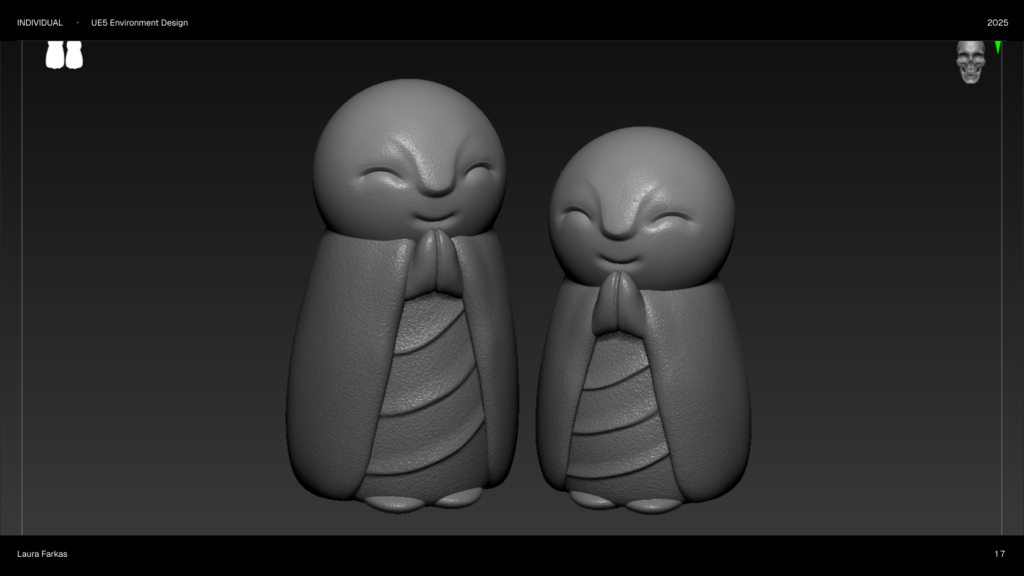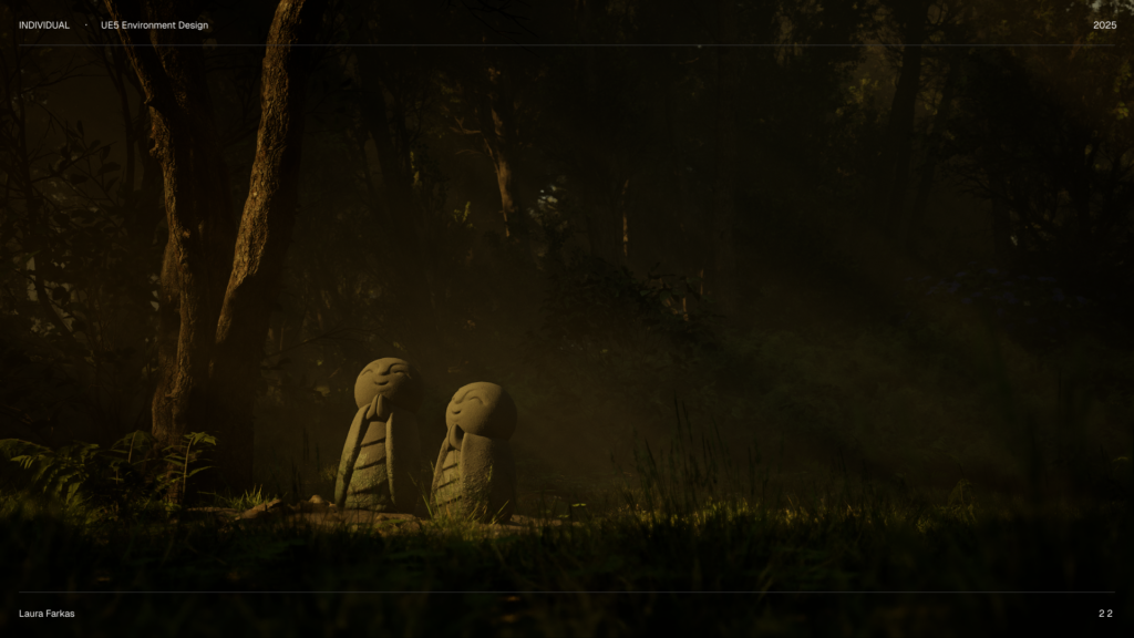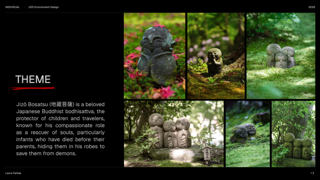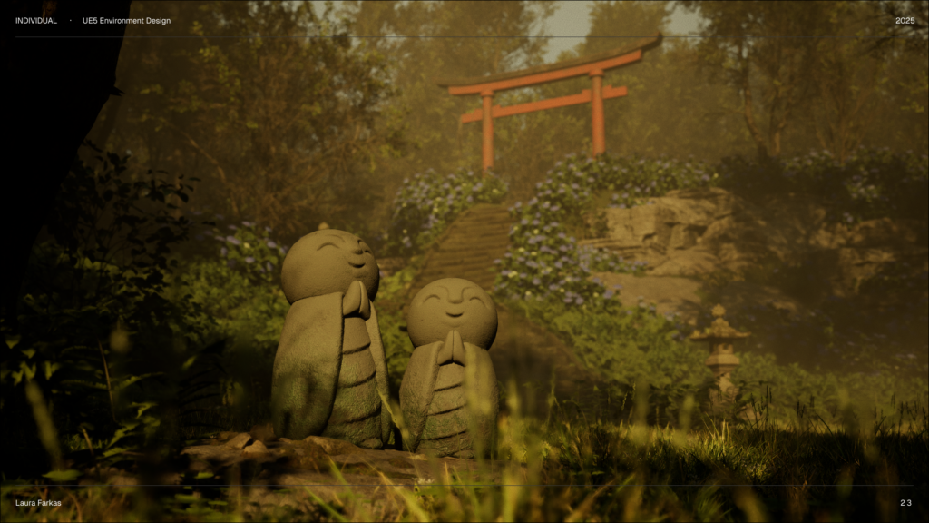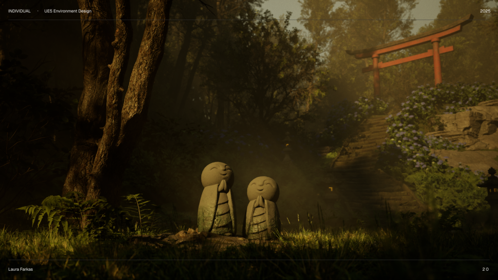 Hlavným cieľom projektu je oboznámiť sa s Unreal Engine 5 a osvojiť si základy. Primárne som sa zamerala na tvorbu environmentu, konkrétne prostredia inšpirovaného Japonskom a soškami Jizō.