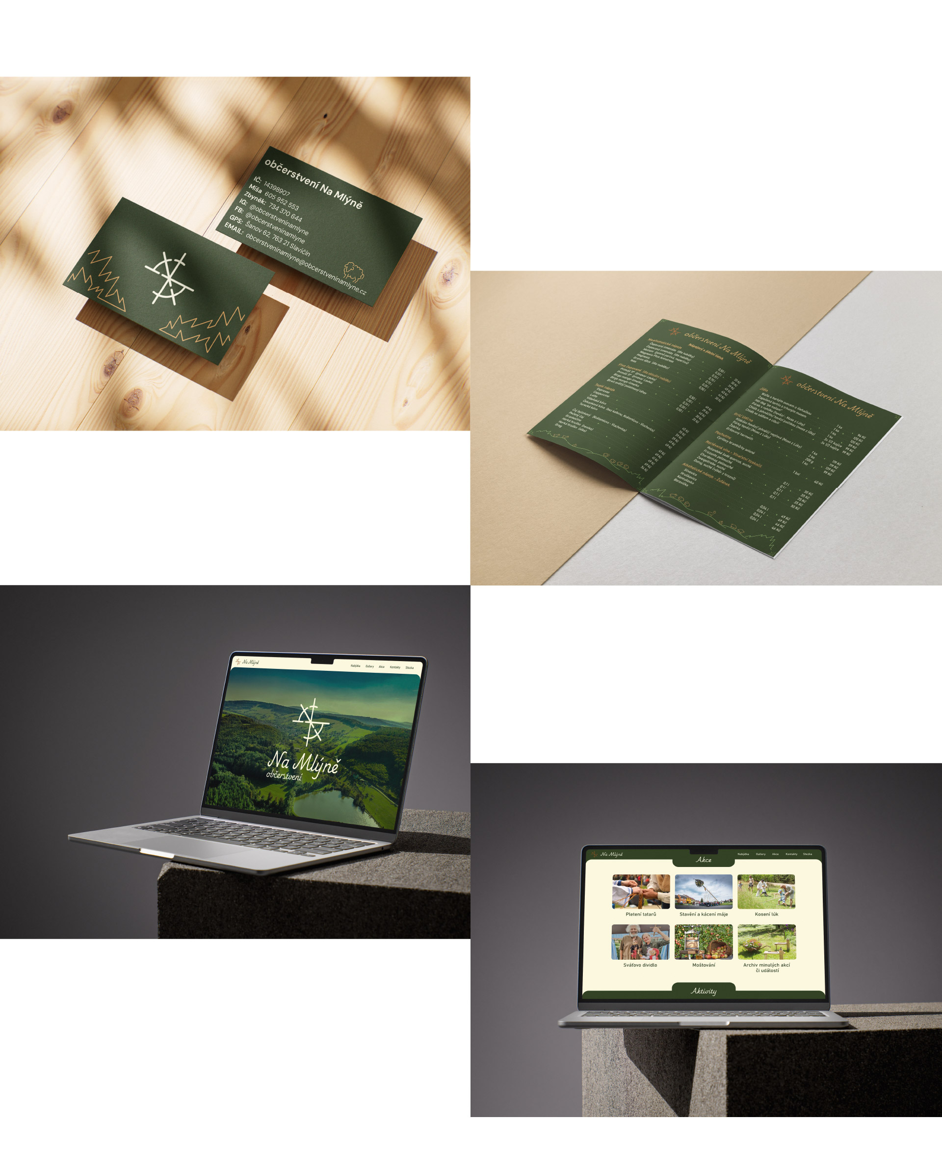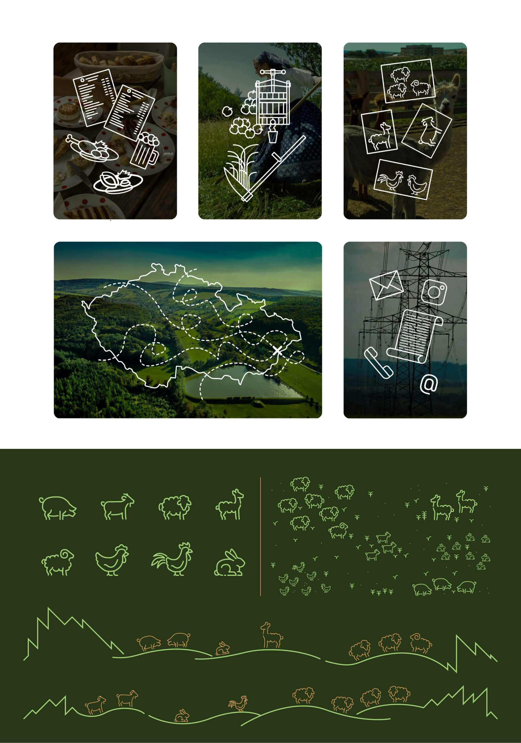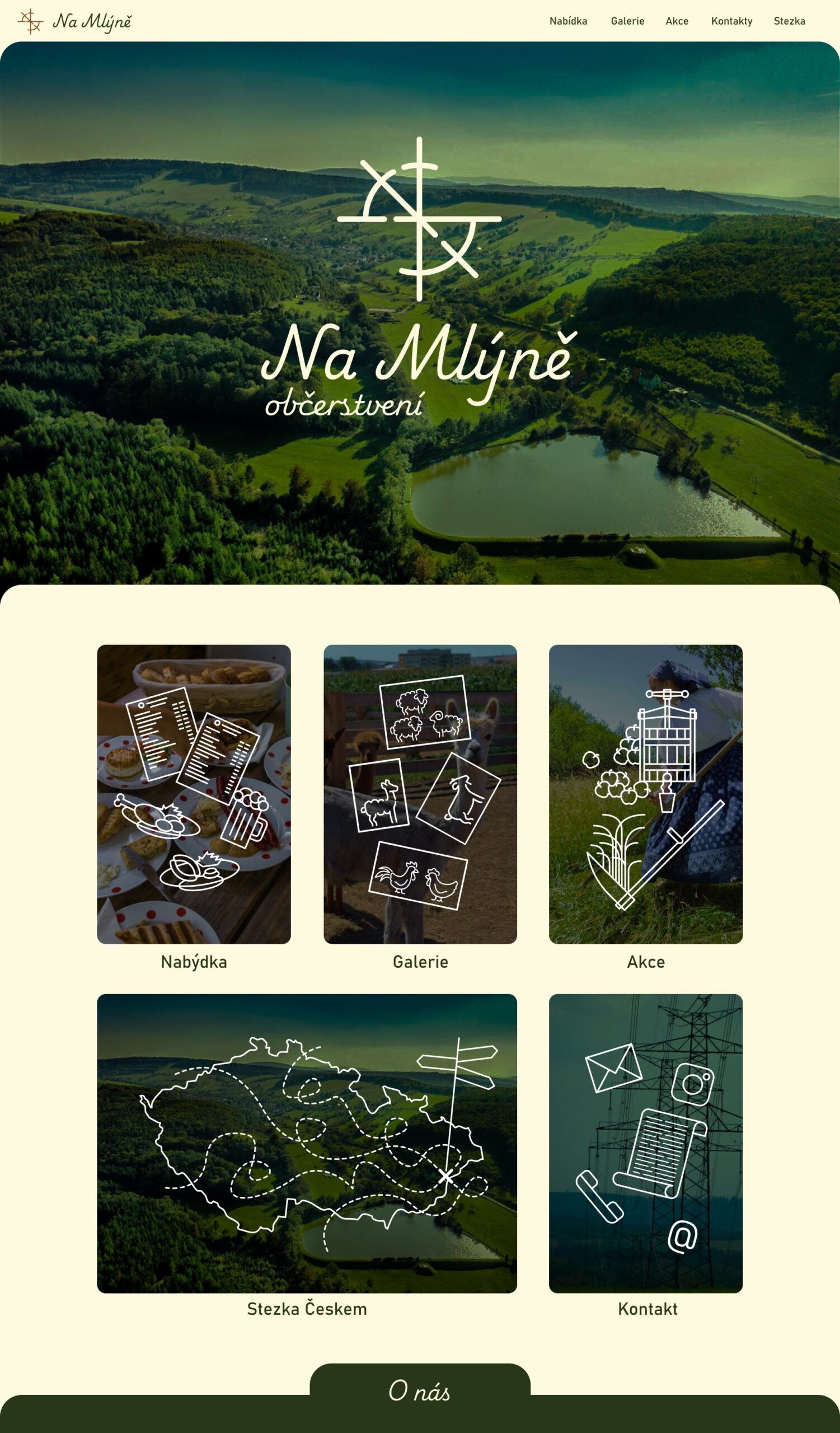 Základem identity je přehledný a jednoduchý web, laděný přehledně a přívětivě. Pracoval jsem s fotografiemi a dokumentací přímo z místa, které jsem doplnil o vlastní ilustrace a ikony. Ty slouží nejen jako komunikační prvek, ale i jako vizuální podpora celé identity. Výsledkem je vizuální styl, který staví na autentičnosti, lidském přístupu a blízkosti k lokálnímu prostředí.