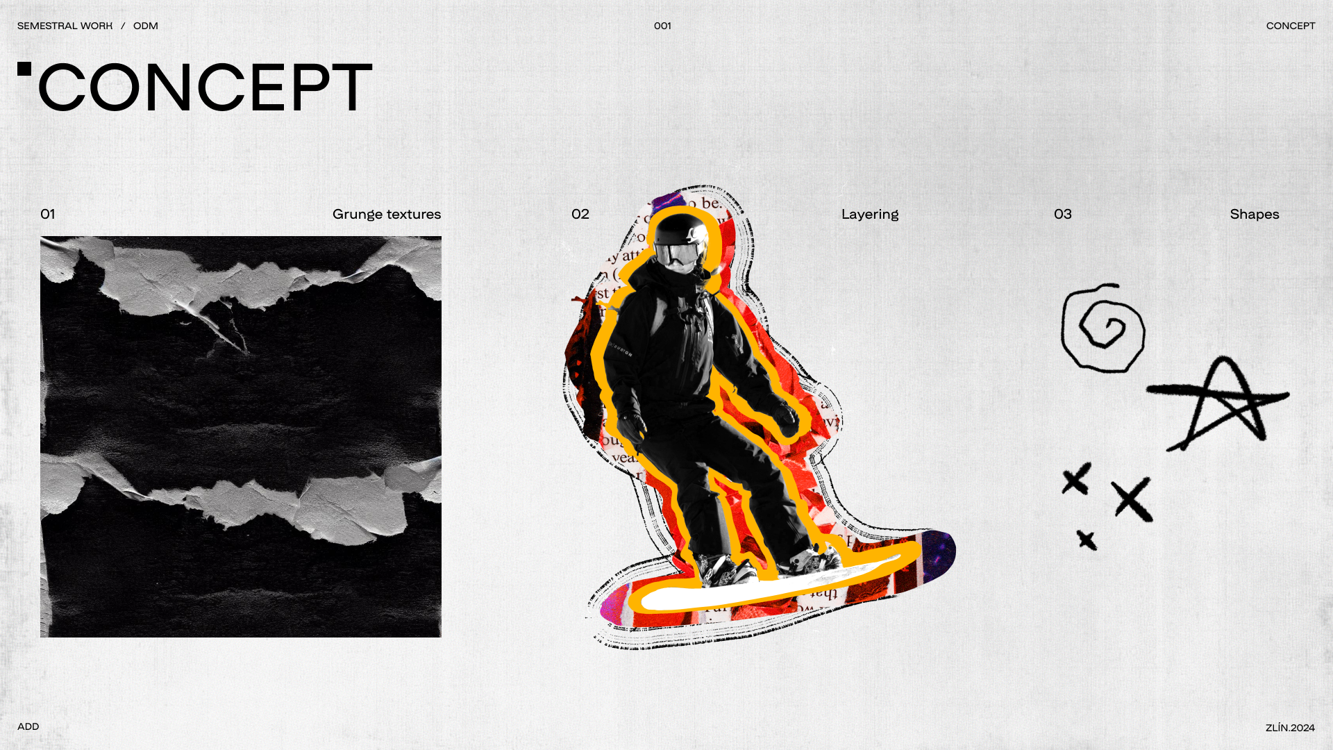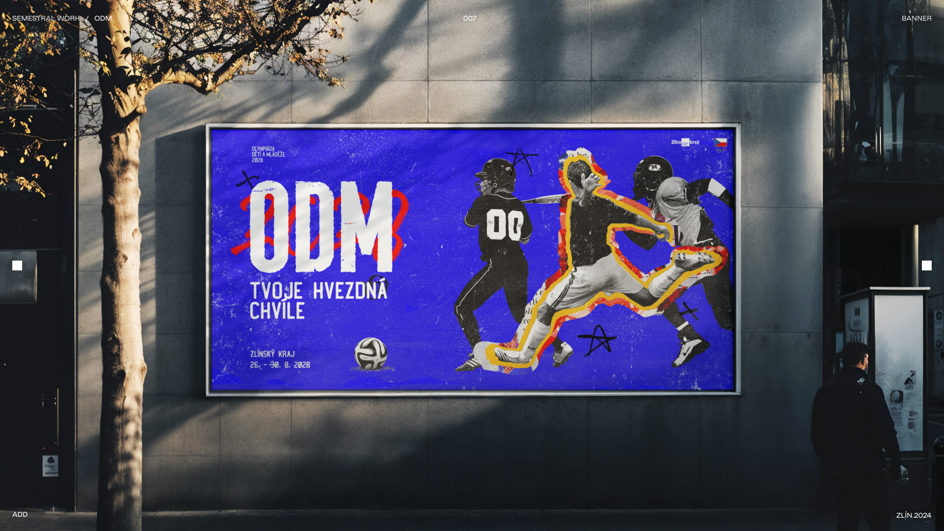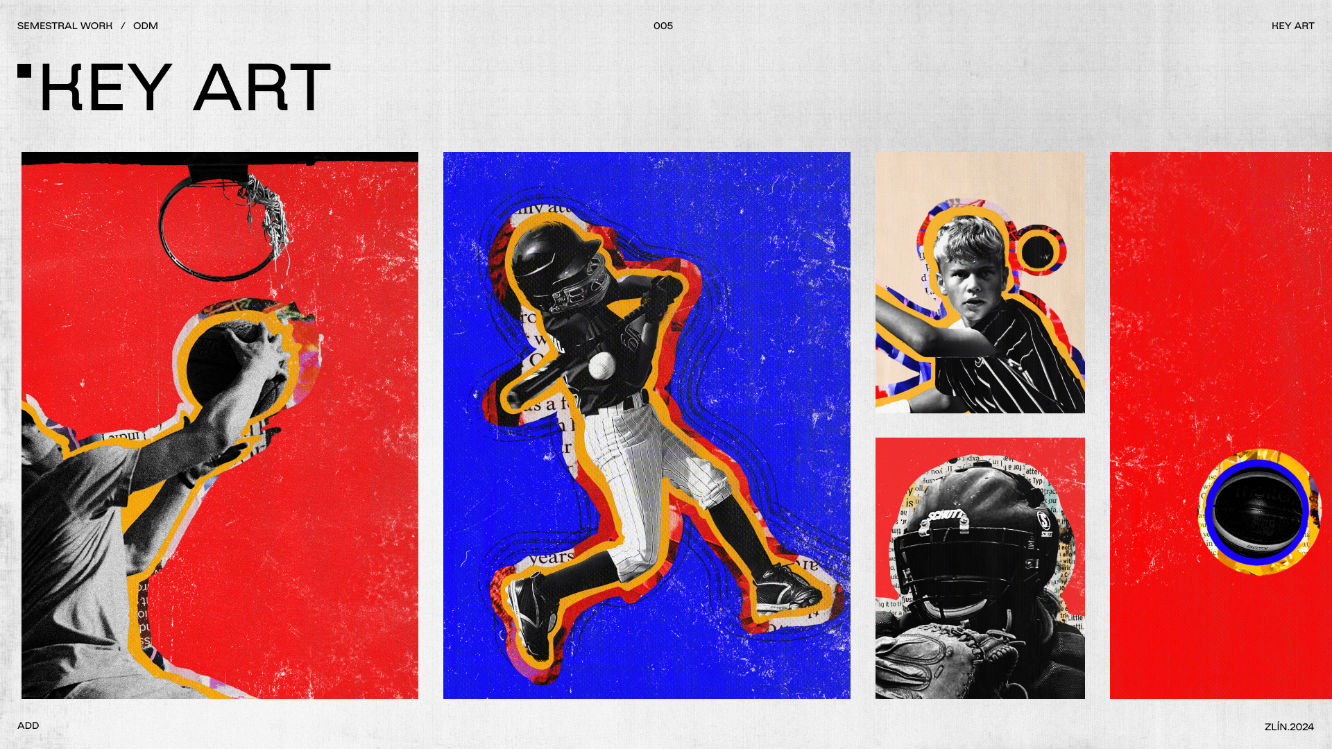 Projekt Olympiáda dětí a mládeže 2028 se zaměřuje na návrh vizuální identity letní olympiády ve Zlínském kraji. Zvolila jsem grungeový styl inspirovaný dynamikou sportu a energií mládeže. Pracuji s hlavními barvami Zlína a České republiky – žlutou, modrou, bílou a červenou. Vizuál stavím na výrazných texturách, kolážové práci s fotografií a ručně kreslených markerových sticích, které podporují pocit pohybu. Výsledkem je sada grafických výstupů, merch produkty a animace prezentující jednotný vizuální styl.
