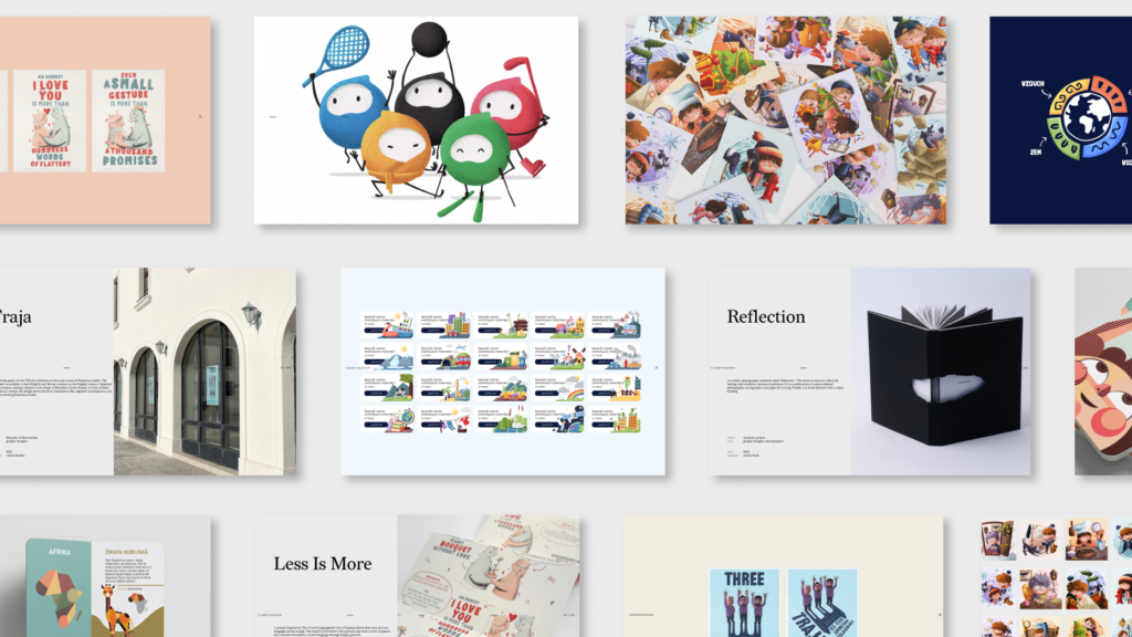 Webové portfólio prezentuje najnovšie projekty z mojej tvorby a slúži ako súhrnná ukážka prístupu k dizajnu, vizuálnemu mysleniu a práci s typografiou, farbou a kompozíciou. Dizajn je založený na čistom, modernom vizuále, ktorý necháva vyniknúť jednotlivým projektom bez rušivých prvkov, pričom si zachováva hravosť a dynamiku vďaka jemným animáciám a interaktivite.