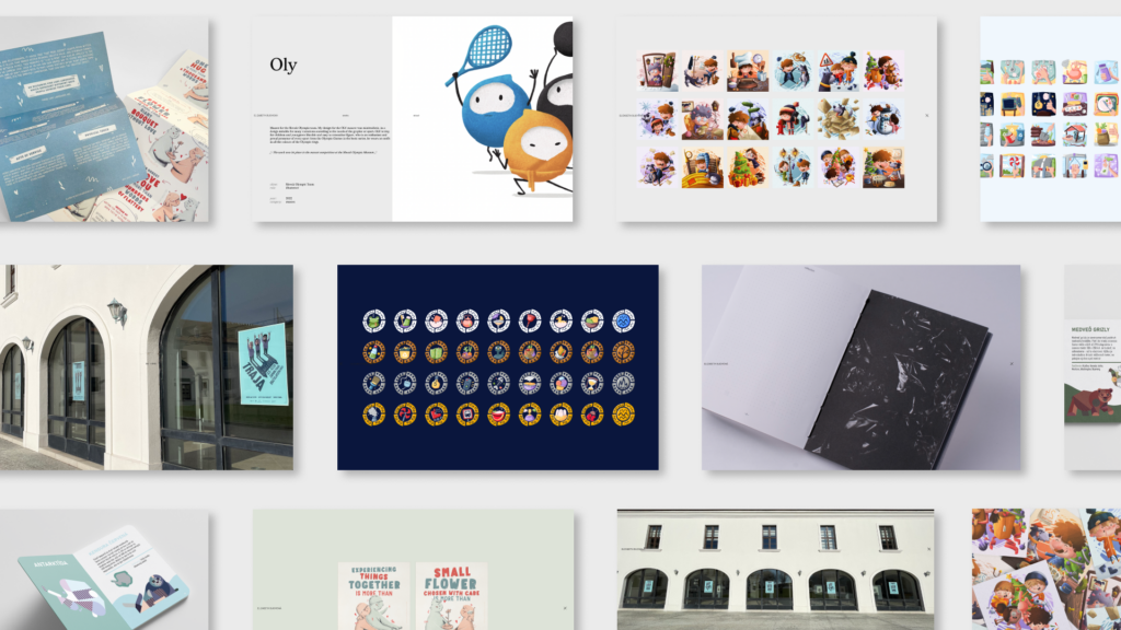 Homepage vizuálne pripomína „rozrobené projekty na stole“ – množstvo prvkov rozložených nepravidelne v kompozícii pôsobí prirodzene, živo a odráža intuitívny proces tvorby. Tento princíp vytvára unikátny prvý dojem a pozýva návštevníka objavovať ďalej.