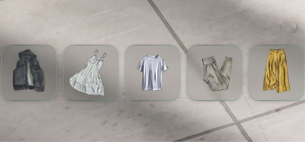 Digitálna interaktívna infografika poukazuje na vplyv textilného priemyslu na životné prostredie. Jej cieľom je hravou a ilustratívnou formou edukovať používateľov a motivovať ich k udržateľnejšiemu správaniu. Vizuál pracuje s tlmenými farbami doplnenými