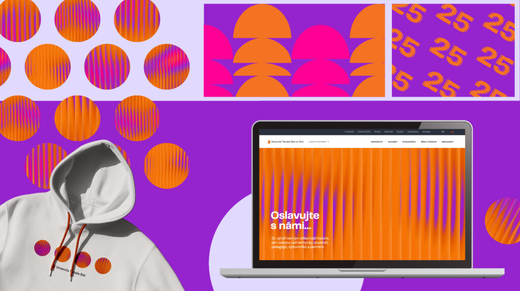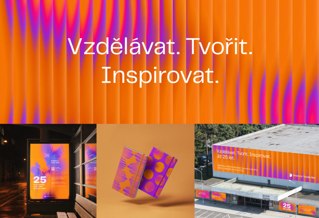 Čtvrtstoletí Univerzity Tomáše Bati oslavuje vizuální identita vycházející ze symboliky skla a hry světla. Zrcadlí myšlenky, práci i příběhy univerzity. Ačkoliv může být jednotlivec křehký, společně tvoříme pevný celek – podobně jako skleněná mozaika. Jedno světlo, tisíc odrazů. Fragmentované vrstvy, odlesky a barvy vyjadřují rozmanitost fakult, oborů i lidí, které spojuje jedna univerzita.