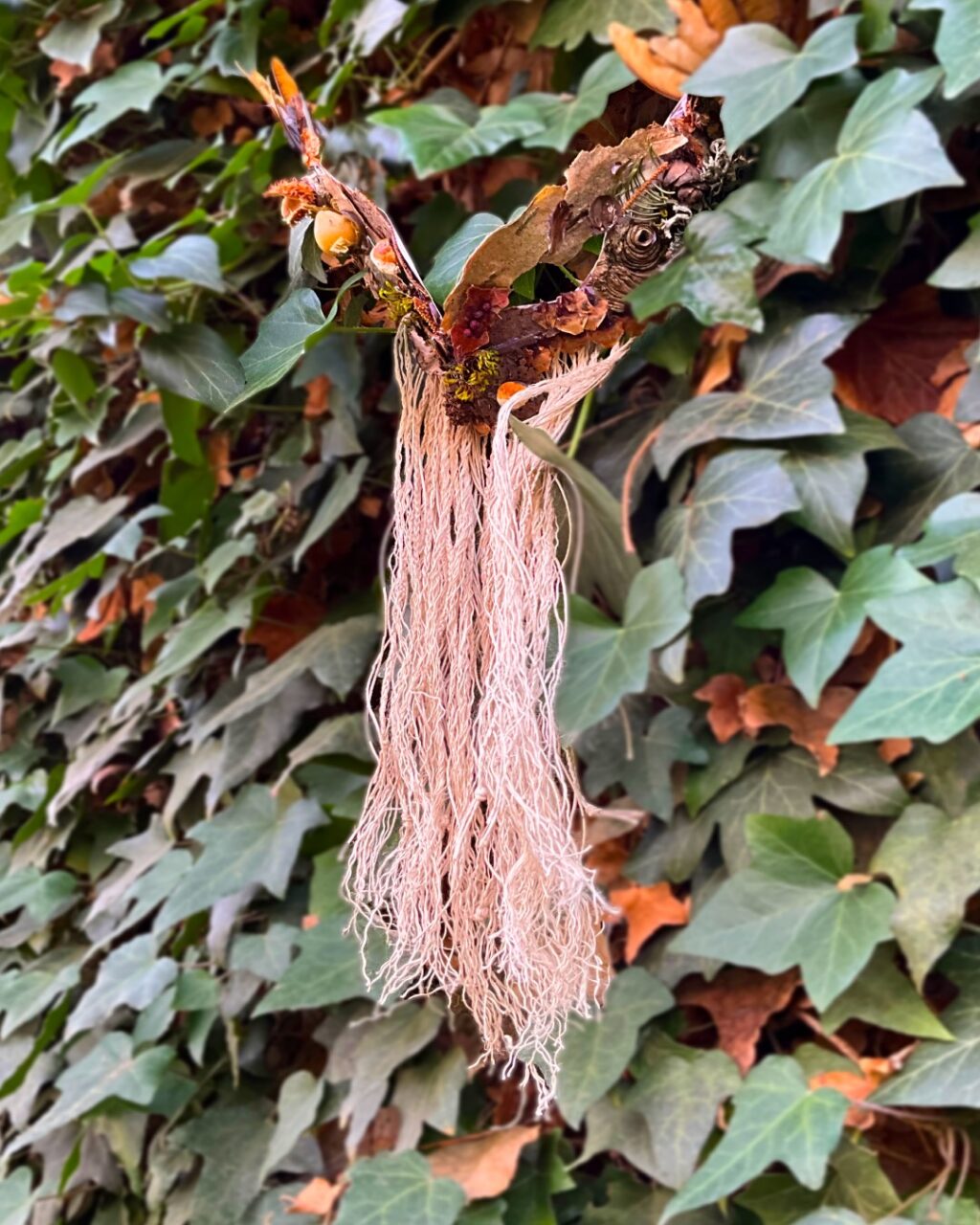 This mask focuses on sensory perception. The mask covers the nose and veils the mouth, thus hindering speech. In this gentle and unobtrusive way, the mask encourages the wearer to rely more on their eyes and ears. To observe and listen rather than speak. By putting on this mask and thus “dressing up the nature,” the wearer evokes a feeling of maskedness and inconspicuousness, further encouraging the idea of quietly listening and observing rather than making sounds themselves.