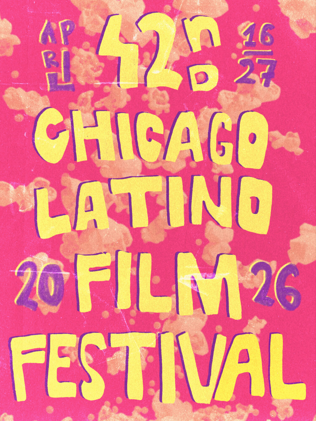Competition poster for the 42nd Chicago Latino Film Festival. A movie without popcorn? That’s impossible. Crunch, crunch. Yum, yum. (Hand typography, digitalized)
