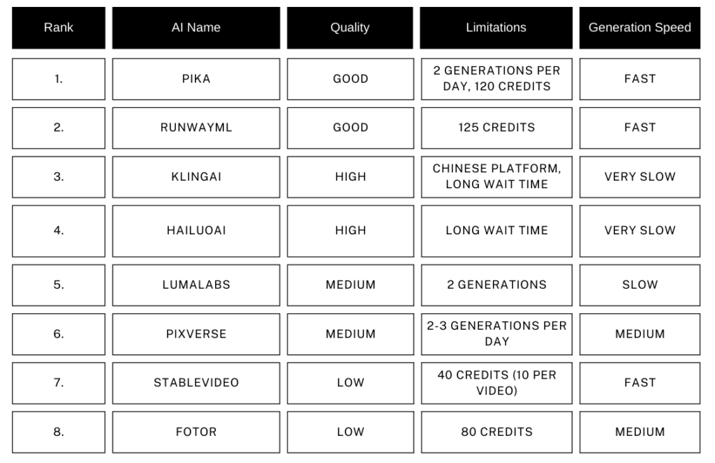 The project demonstrates the potential of neural networks for visual storytelling. While they allow for rapid content creation, they require careful control, refinement, and manual editing. Below is a comparative table of the neural networks used in the video.