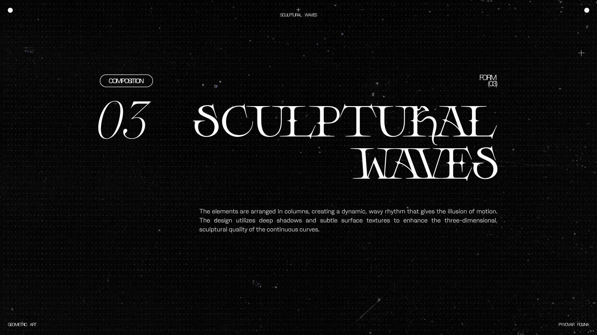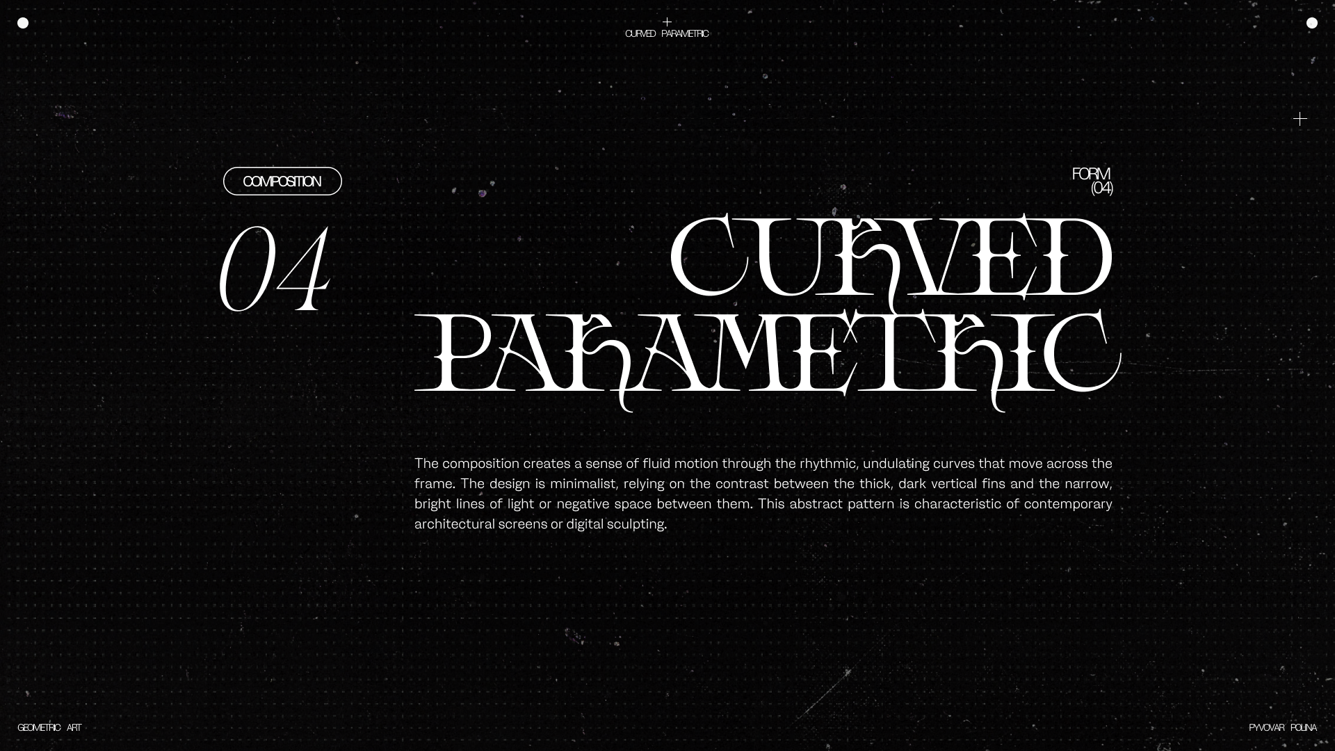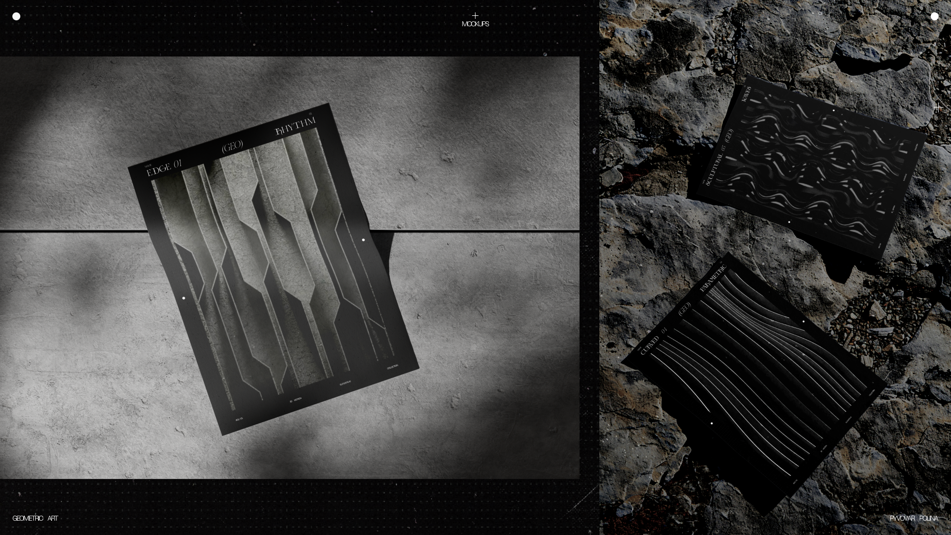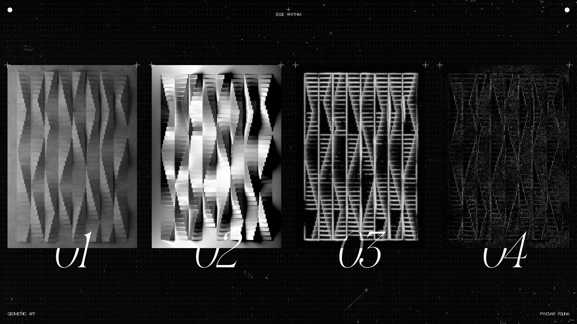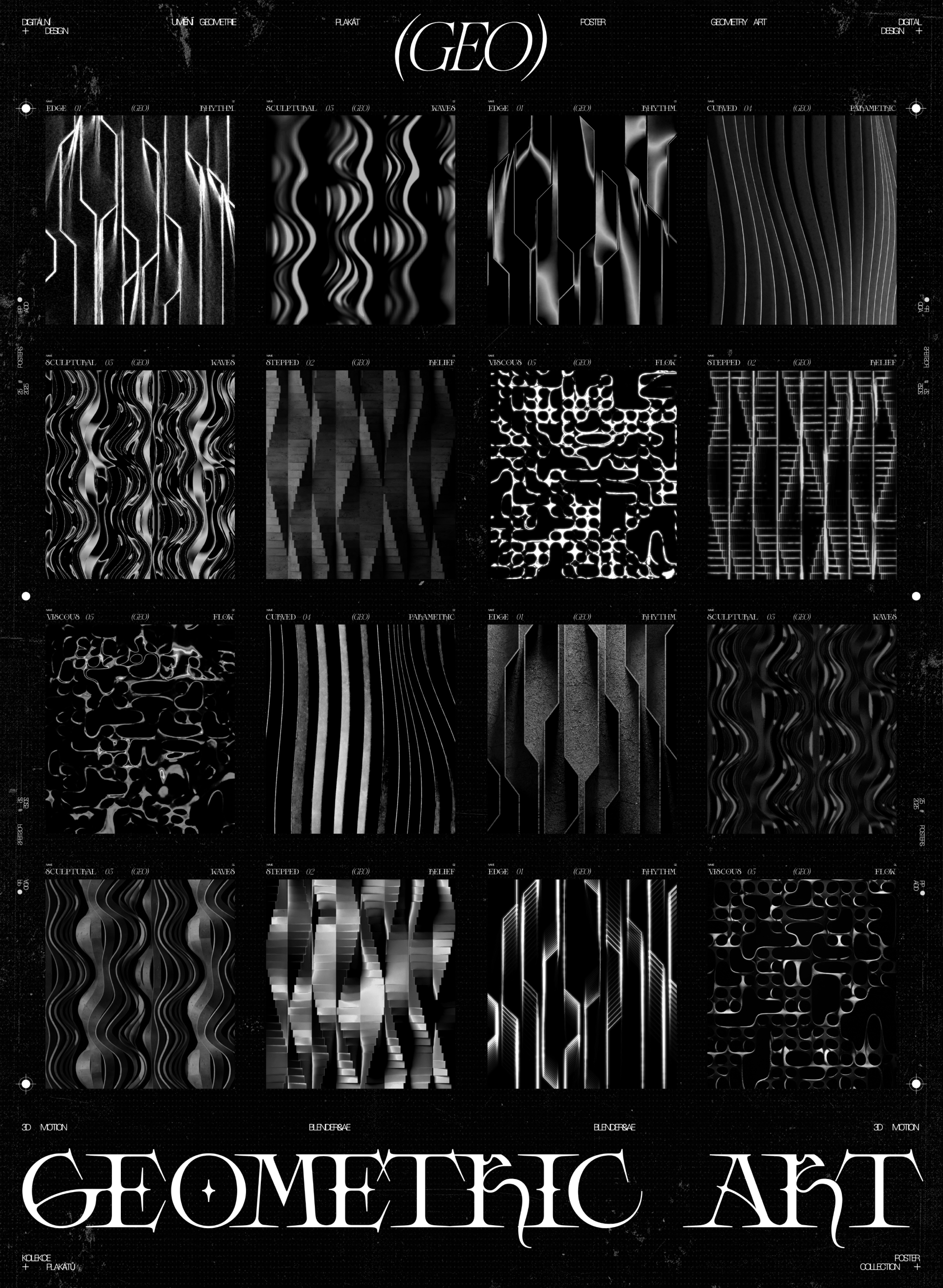The project Geometric Art focuses on the use of simple geometry as a fully-fledged visual medium within contemporary digital technologies. I worked with five different compositional principles and forms, for which I created 3D loop animations in Blender. Three different 2D filters were subsequently applied to each animation. The result is a series of five posters, each dedicated to a specific composition and form.