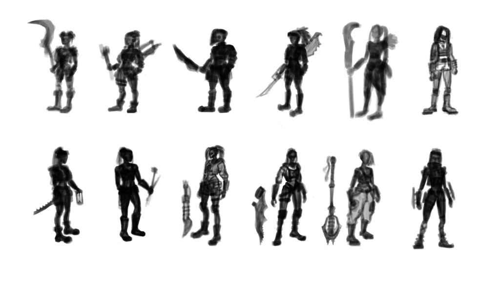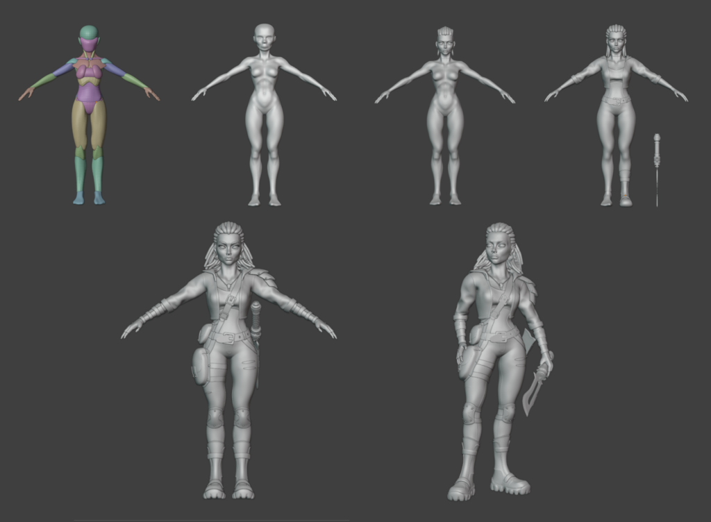 The project focuses on creating a character from concept to final 3D model. The work includes key stages: idea development, silhouette sketches, detailed concept art, and 3D modeling. The goal was to combine 2D drawing and 3D modeling skills in one pipeline, learning to develop an idea from early sketches to a final concept, and to explore sculpting in Blender as well as lighting and rendering.