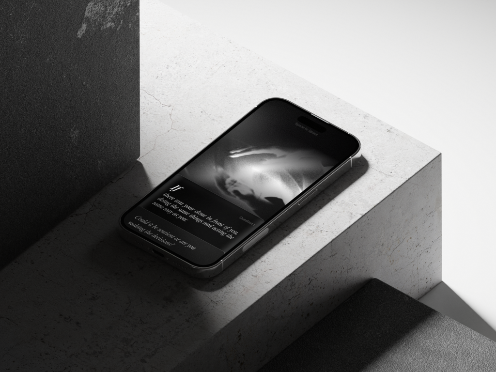 those people or are you actively advocating or trying for a change? The set of scenarios is constructed to serve as allegories to the usual questions that arise with AI usage. The goal is not to critique the user but to make them look inward and search for the nature of their character. The visual language is clean, done only in black and white and without any distracting elements. Atmospheric illustrations come together to make a dream-like experience capturing the user in their essence.