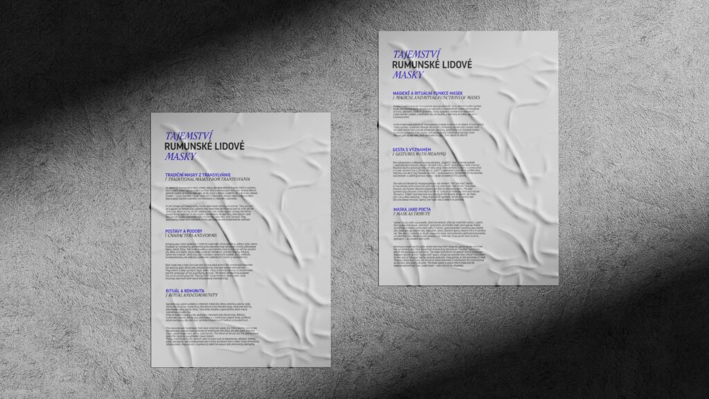 The poster for the exhibition The Mystery of the Folk Mask visually introduces visitors to the world of traditional Romanian folk masks as carriers of identity, ritual, and collective memory. The exhibition presents a unique collection of masks and highlights their symbolic, social, and aesthetic significance within the context of folk traditions.