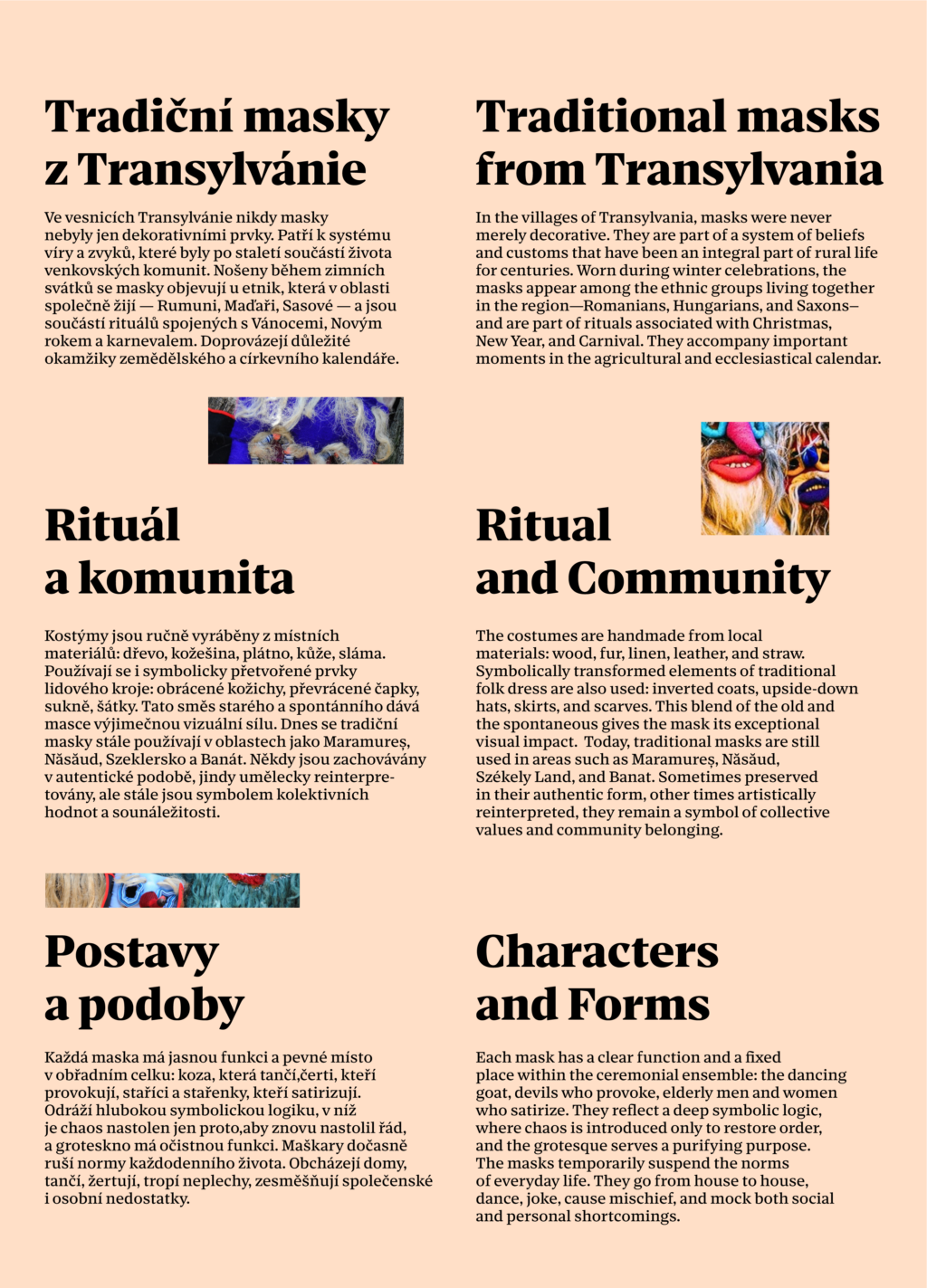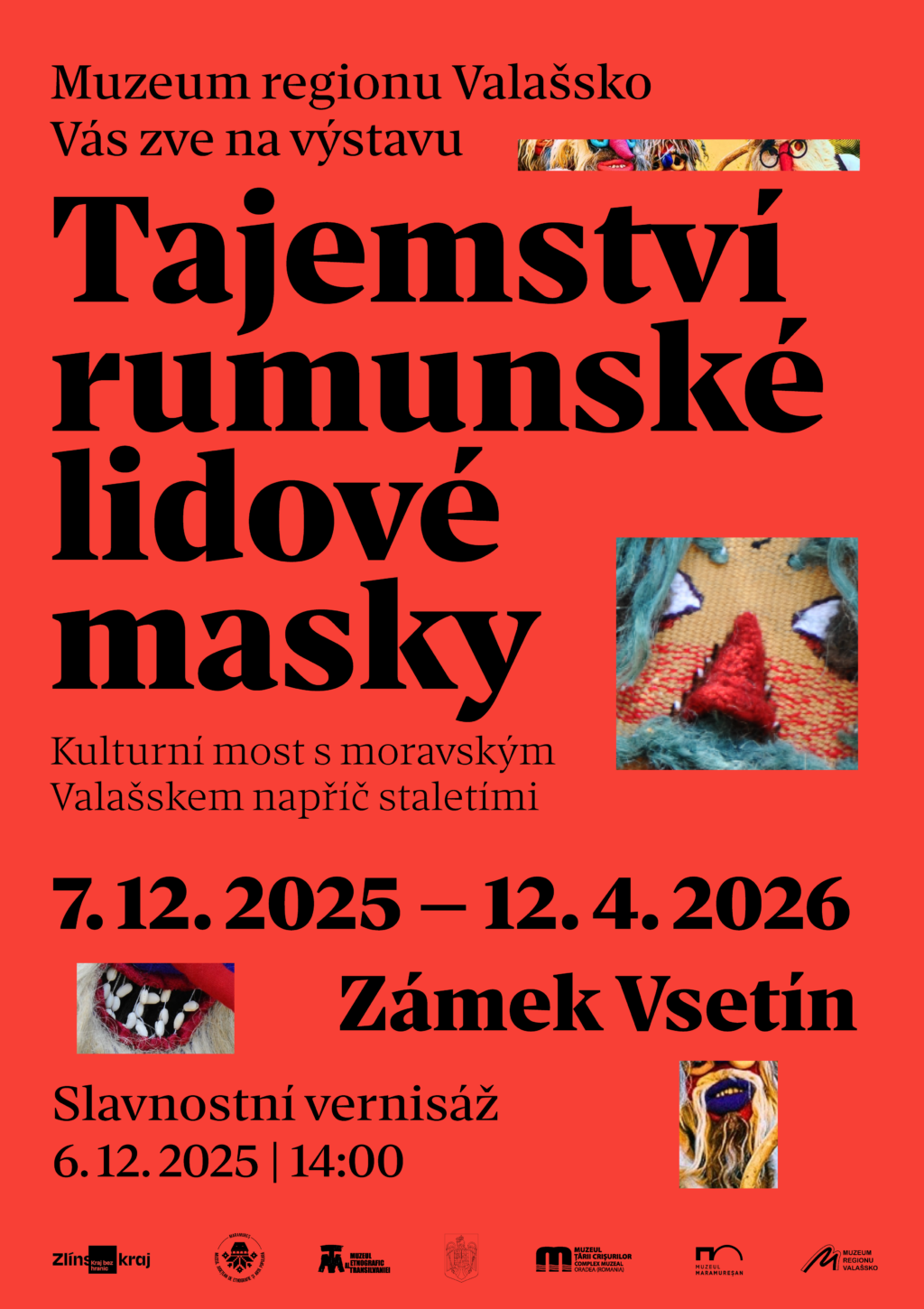 Posters and information panel for the exhibition Mystery of Romanian Folk Masks at the Museum of the Wallachian Region. Czech and English versions.