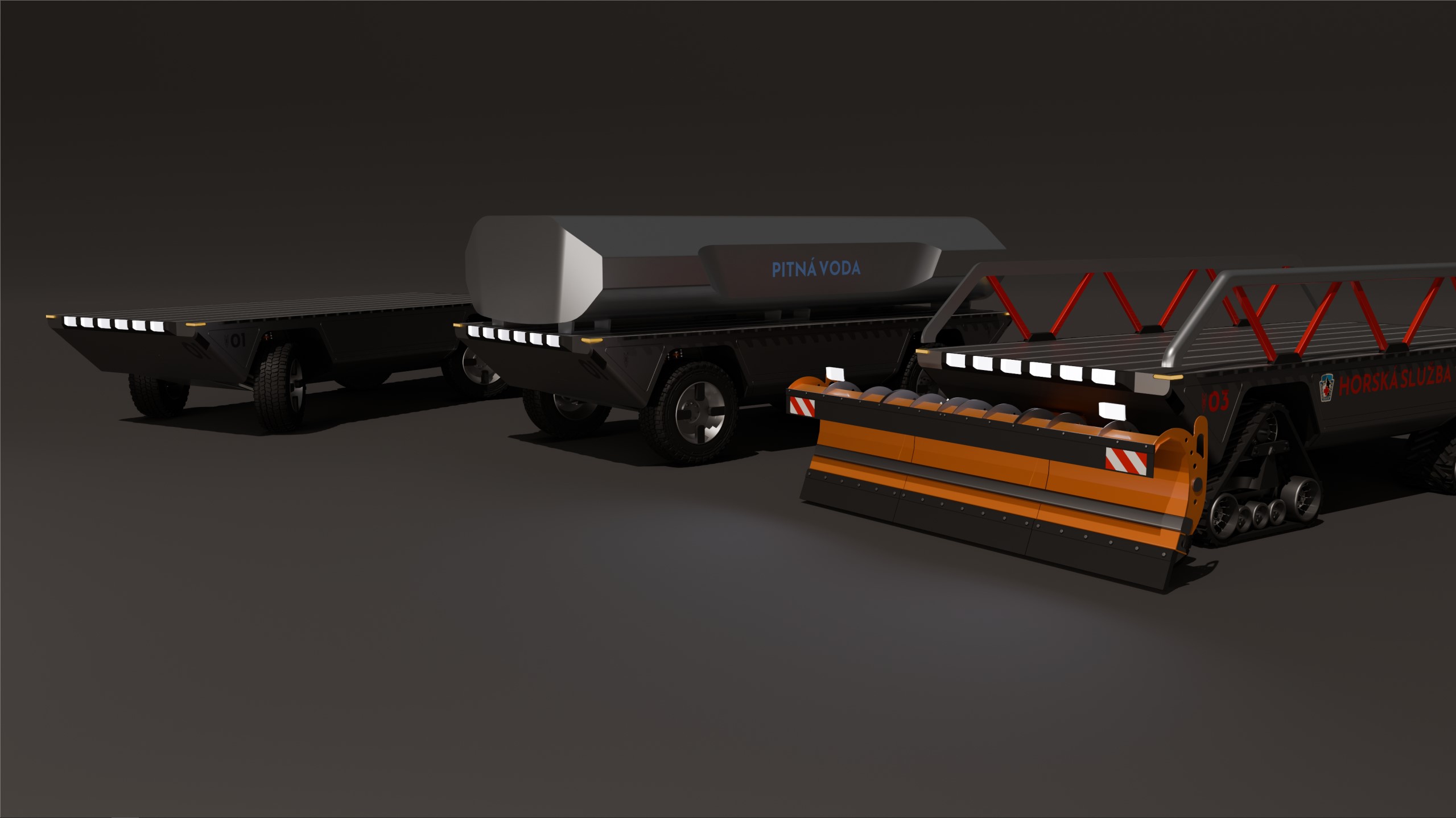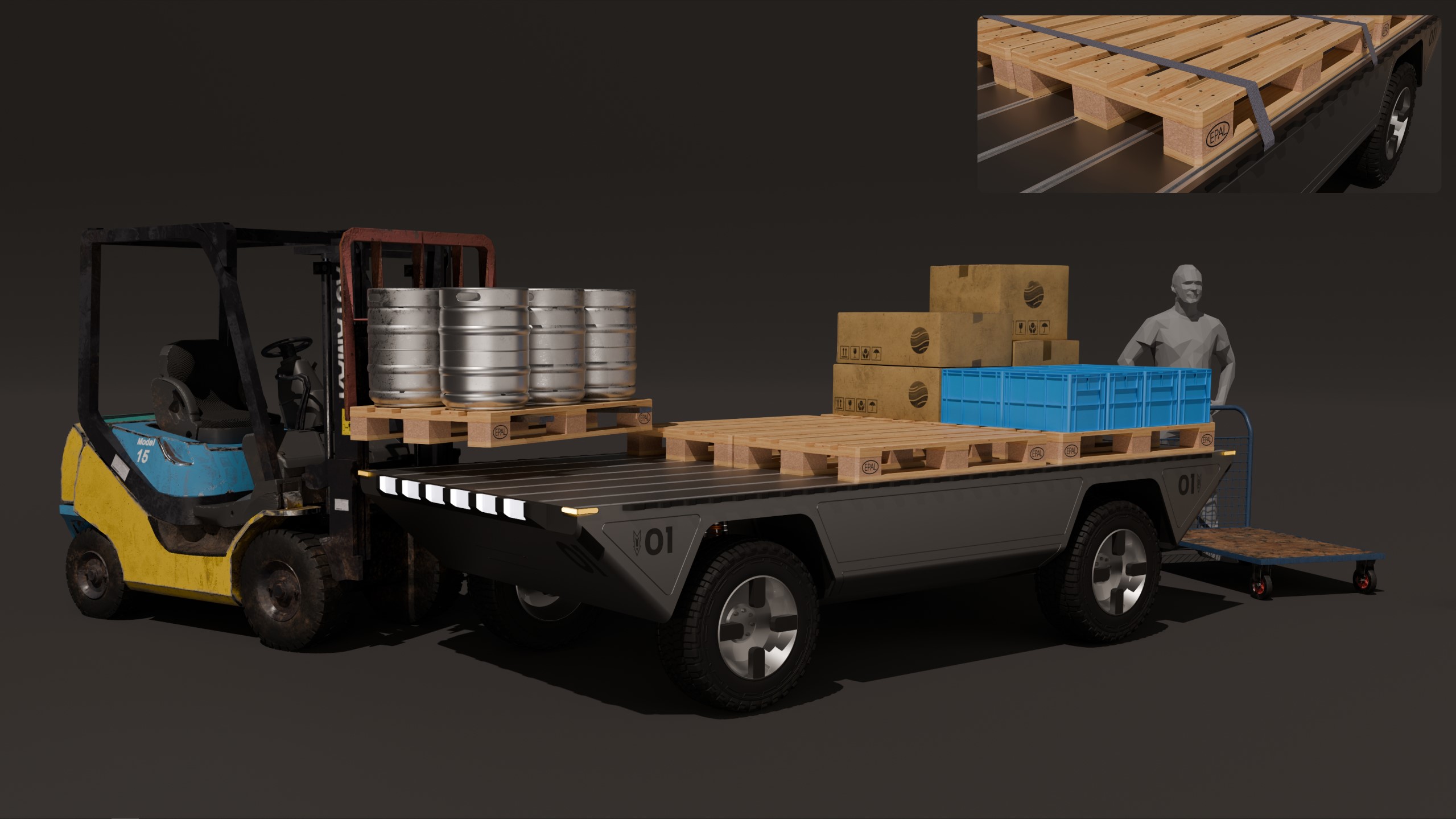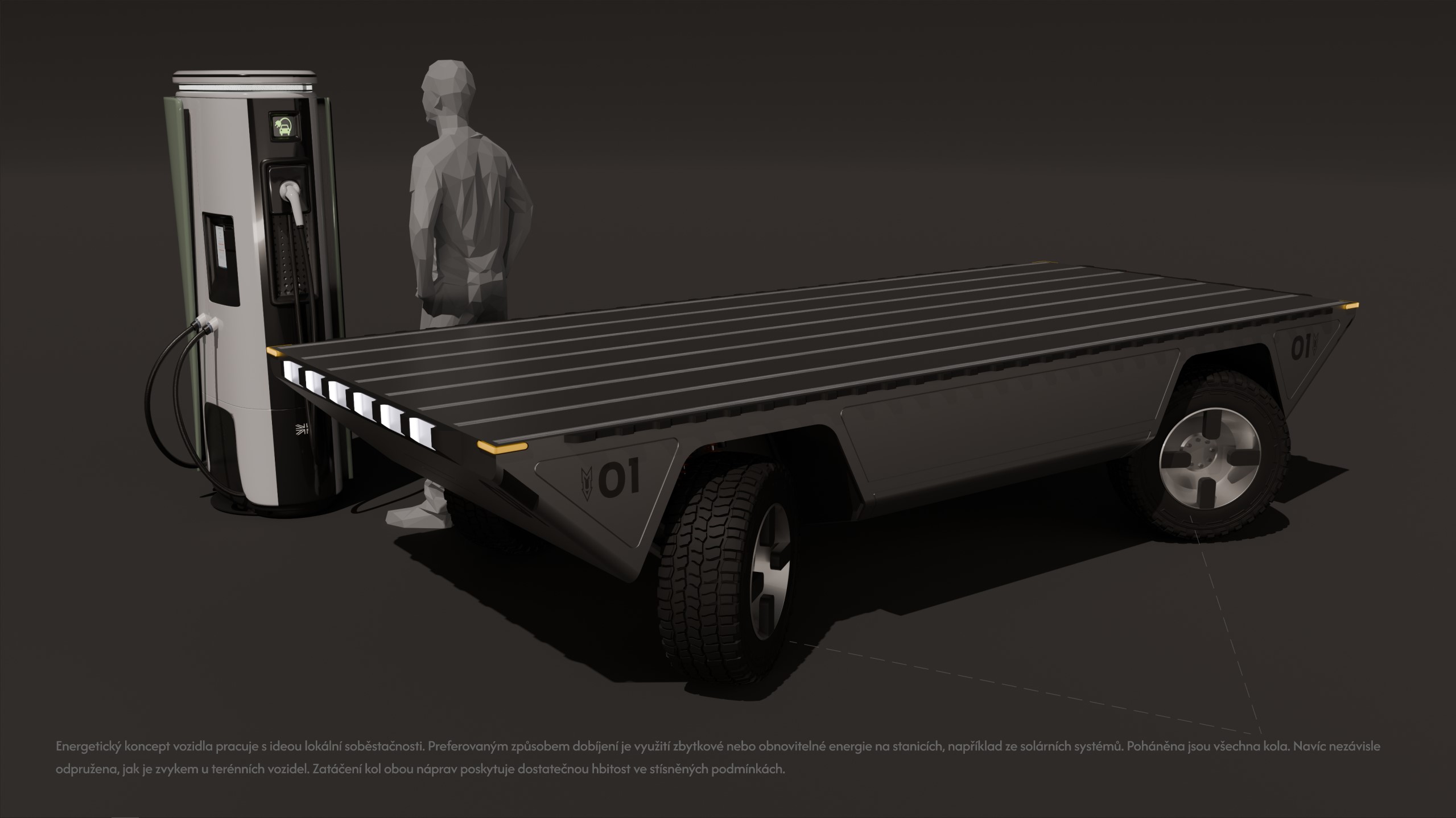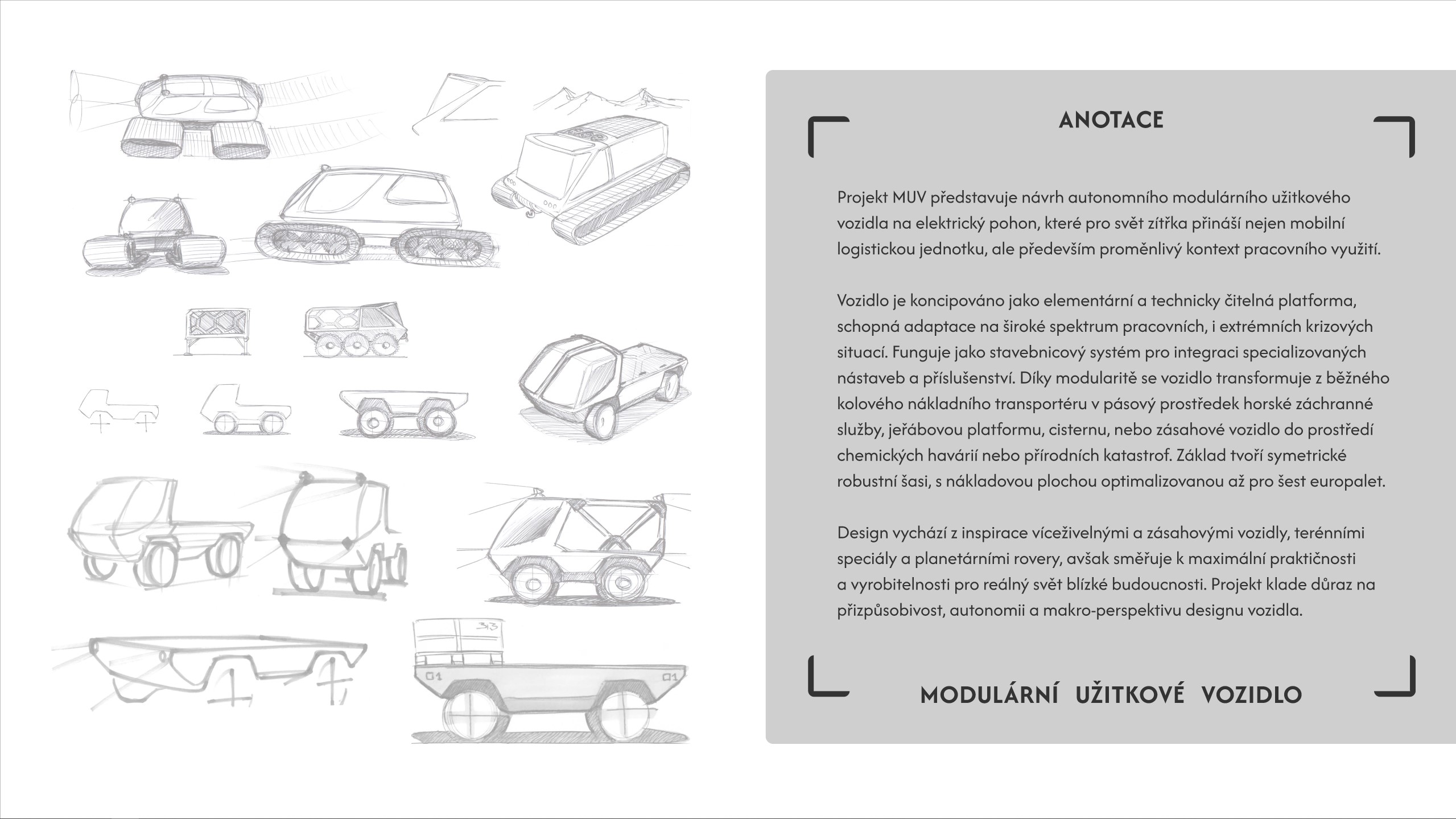 The autonomous modular electric utility vehicle „MUV“ is conceived as a flexible mobility platform for future logistical and operational use. Rather than functioning solely as a transport vehicle, it provides