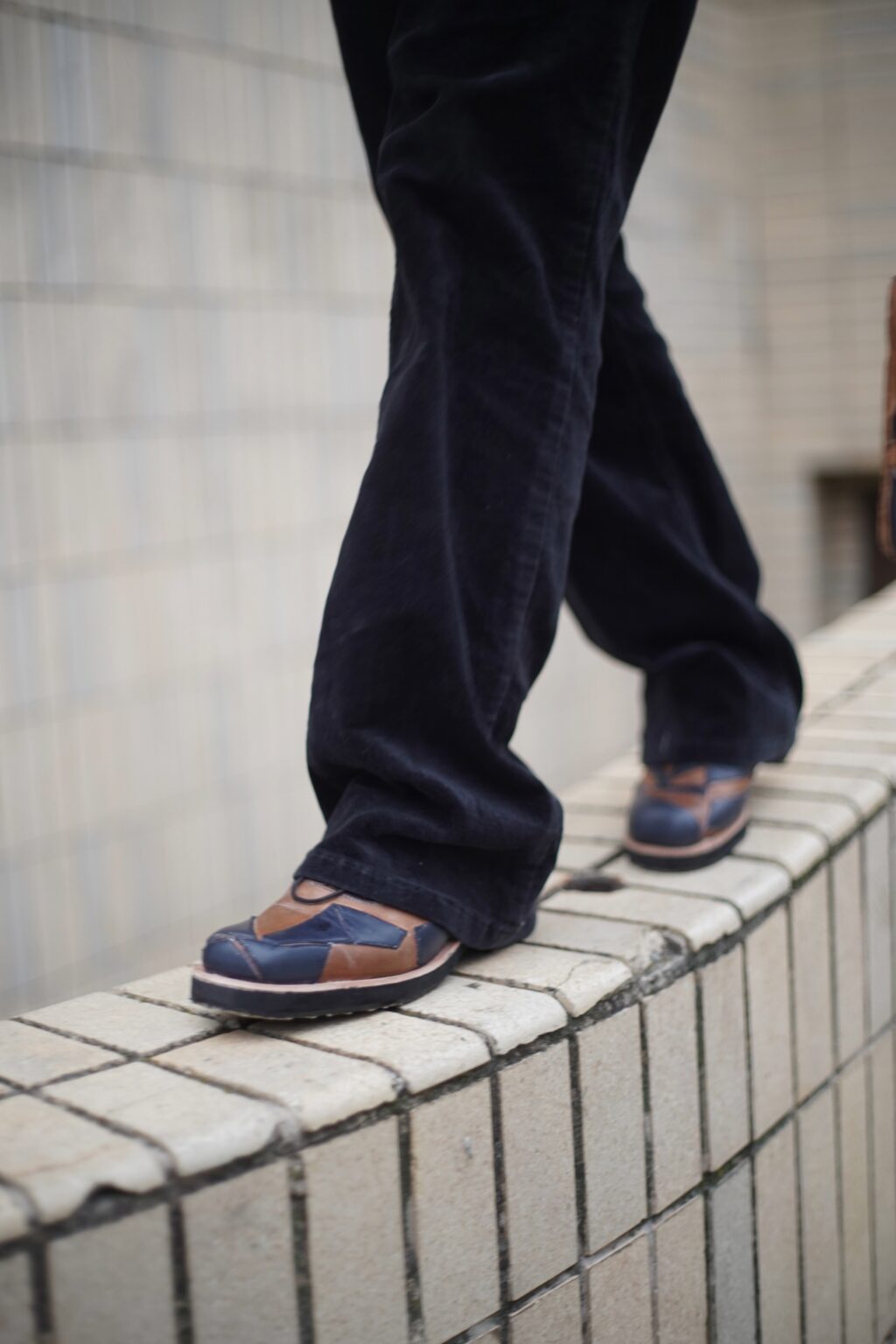 The D.I.Y BOX collection expresses culture – Do it yourself, ideally from available materials. In addition to this basic idea, it also depicts sustainability, as the main materials for this pair of sandals were the inner tube from a bicycle and the used material from a handbag. For the finish of this collection, a “trashy” waste look is used, which is found on the surface of the tapes as dried liquid glue.