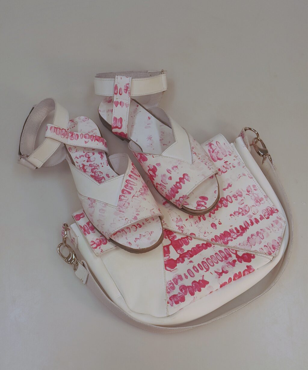 These textures were printed onto white leather used for both a sandal and a bag. The forms and functions intentionally avoid conventional solutions, balancing between usability and visual provocation. The project reintroduces experimentation, imperfection, and play as acts of resistance against standardization.