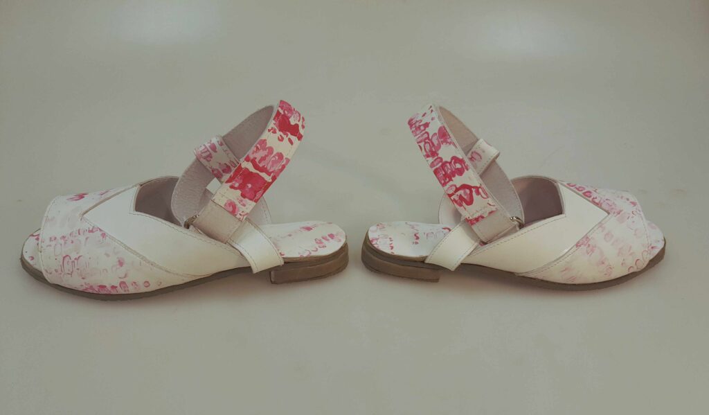 I approached the brand through its opposite. I kept only its most essential elements — monumental straps and a robust sandal construction and stripped everything else away. For the surface design, I chose a technique deeply rooted in childhood memory: printing through textures. Using everyday organic materials such as potatoes, peppers, corn, cranberries, and lemons, I explored imperfect, tactile patterns.