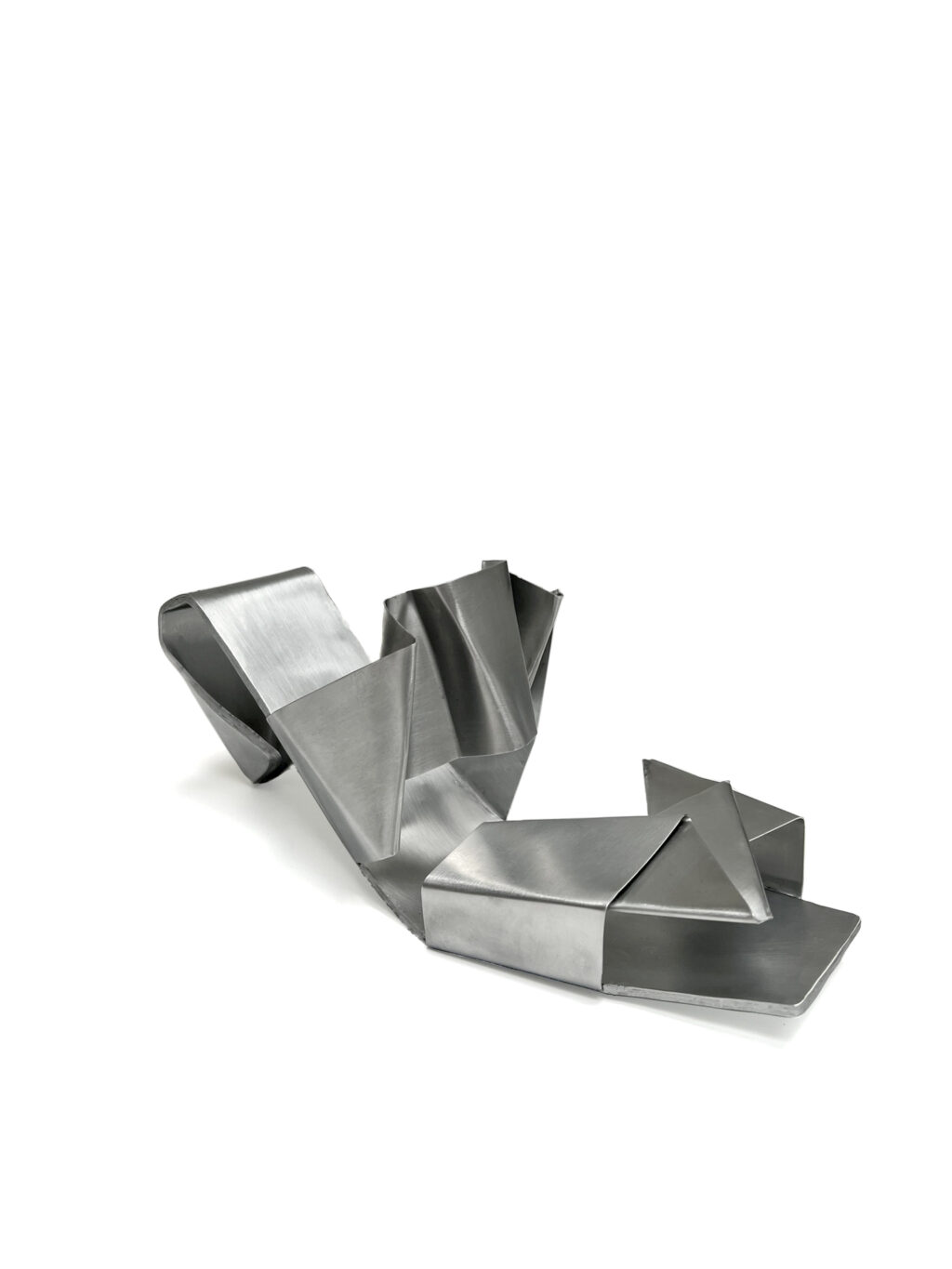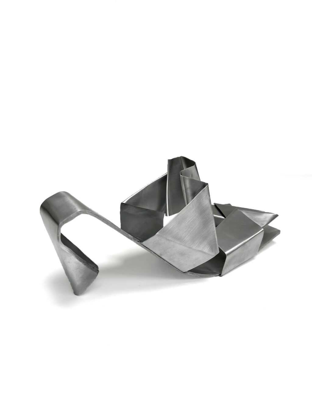 This shoe is designed more as an artistic concept than as functional footwear. The main theme was three stripes, which I transformed into geometric straps. The choice of metal shifted the design from practicality towards a sculptural object, where the strength and rigidity of the material contrast with the usual idea of a flexible shoe. The goal was to show that even a simple motif, such as three straps, can be reimagined into an unconventional and aesthetically striking form.