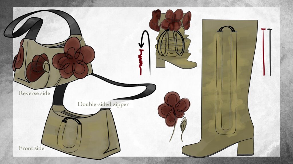 This project explores the metamorphosis of identity in time through the symbolism of a flower. The gathered and wrinkled surface reflects the passage of time, aging, and lived experience, while the hidden bloom represents an inner self that is not constantly visible. The flower is revealed only through movement and transformation, suggesting moments of safety, openness, and personal growth. The design balances concealment and revelation, drawing parallels between natural processes and the evolving layers of human identity.