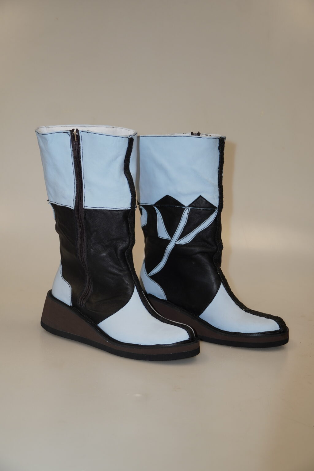 In contrast, the mid-calf footwear expresses the final stage of this process. Its shape is more dynamic and open, with details that evoke an abstract butterfly as a symbol of blossoming and transformation. Together, these pieces create a visual story of growth, change, and new beginnings.