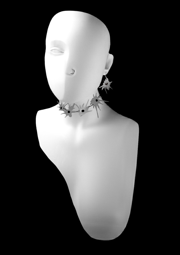 The Organica leather jewelry collection captures plant inspired from nature. The necklaces are designed to evoke the sensation of plants gently wrapping around the neck, creating an organic impression, as if they were naturally growing on the body. The central inspiration is the image of Chinese Chrysanthemum and Orchid blossoms, which appear to bloom directly on the wearer’s neck. The primary inspiration for the collection is the 1920s, particularly the iconic feathered headpieces and layered pearl necklaces that often formed decorative patterns on the head or décolletage. These historical elements are transformed in the Organica collection into a contemporary, slightly avant-garde visual language.