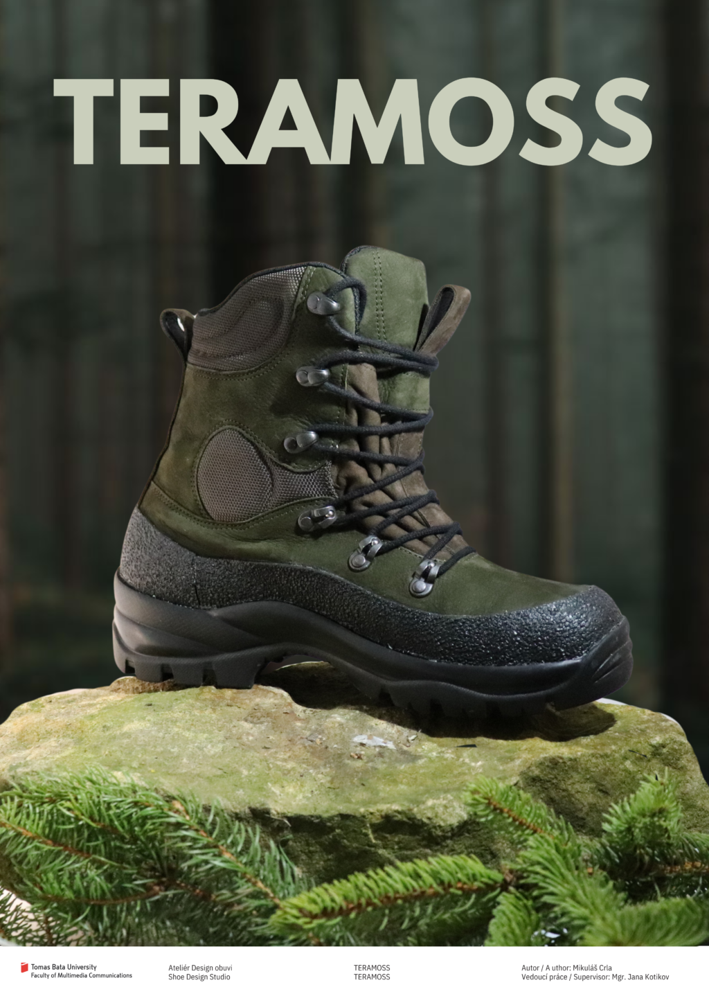 The Teramoss project presents a modular collection of hunting footwear with integrated gaiters and multifunctional accessories. The aim of the project was to combine practical shoemaking experience with innovative design and a high level of adaptability for various terrains. The product is based on the principle of metamorphosis – the gaiters can function as a protective layer for the footwear or be transformed into a standalone bag, altering the height, weight, and function of the boot according to the user’s current needs. The collection is built on a modular system in which a single product offers multiple functional configurations, including variable carrying options for ammunition belts and additional pouches. Materials such as Cordura, cowhide nubuck, and brushed calf leather ensure high durability, comfort, and functionality. The project was realized with the support of Selva, which provided materials for the production of prototypes.