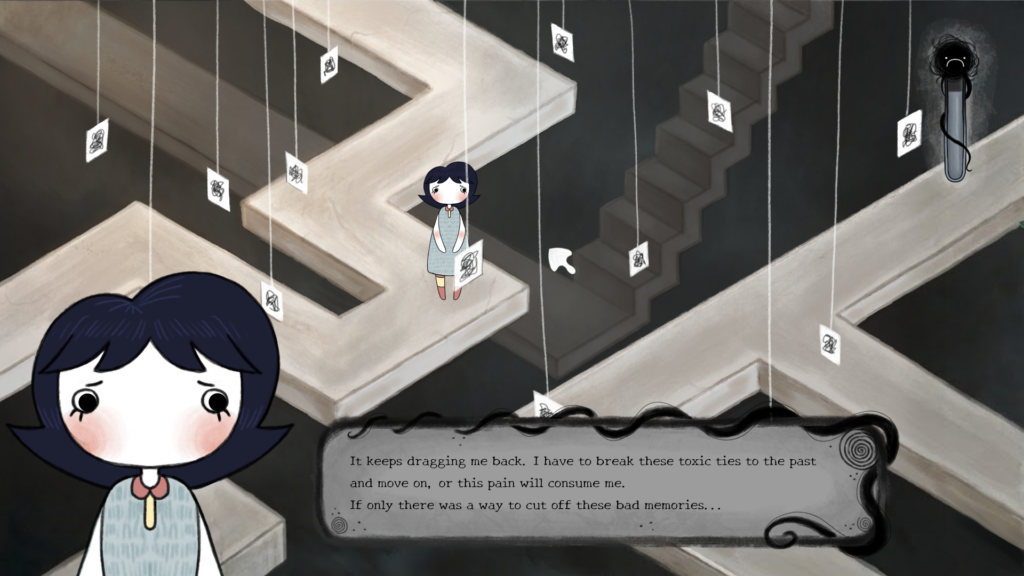 Hráč odřezává toxická pouta k minulosti a uvědomuje si, že jít dál lze jen tehdy, když přestaneme bojovat s neměnnou realitou minulosti.