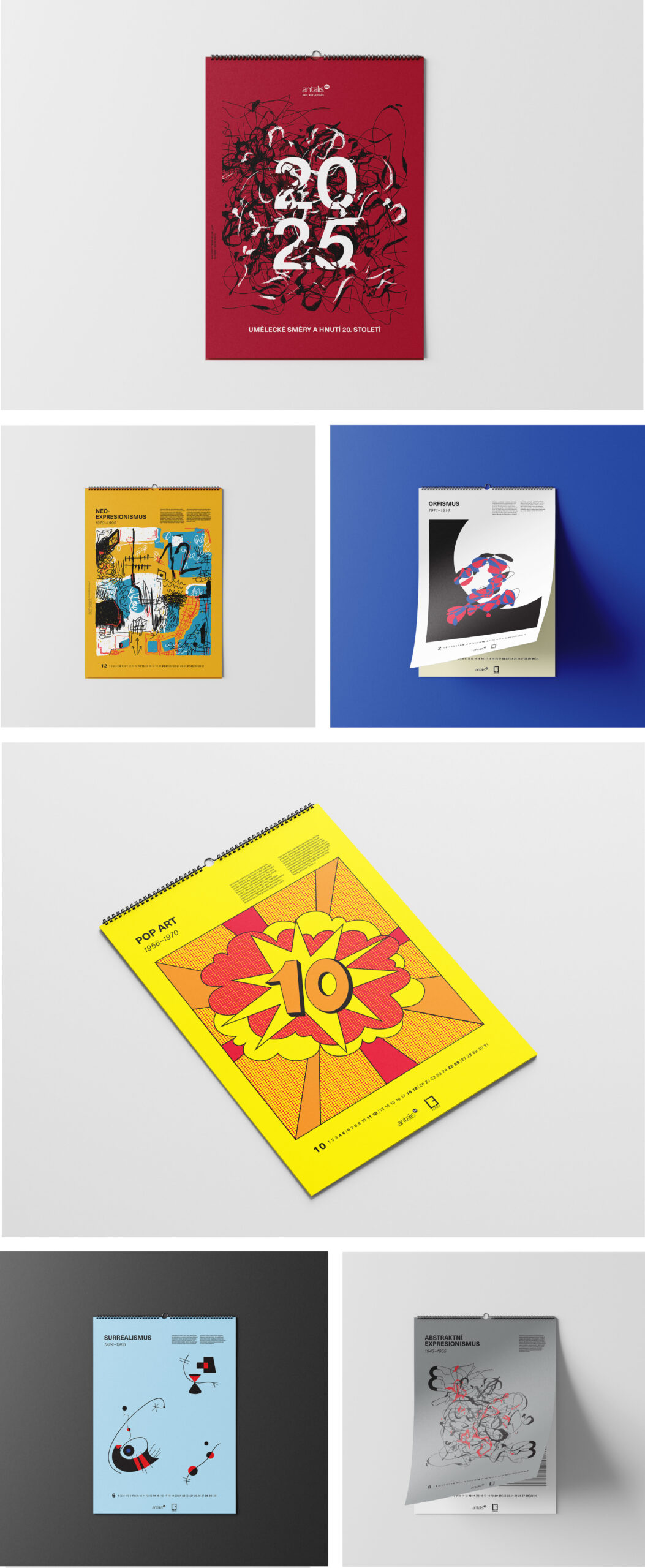 Hlavní roli při tvorbě nového kalendáře sehrály umělecké směry 20. století. Mým záměrem však nebyla snaha věrně kopírovat daná umělecká díla, nýbrž se inspirovat specifickými rysy výtvarných směrů a pomocí vektorů je přenést do grafického designu. Abych rozšířila povědomí o moderním umění a přiblížila je veřejnosti, přistupovala jsem ke kalendáři jako k samotnému obrazu. Pokud se řekne pojem abstraktní umění, vybavím si směsici zjednodušených tvarů, dokonalou fúzi barev a kompozic. V obrazech se snažím vždy najít hlubší smysl, který většinou není na první pohled znát, ale je pro jeho pochopení nepostradatelný. Stejně jako v uměleckém díle i v tomto kalendáři se na každé straně skrývá něco, co přiměje diváka se nad „obrazem“ pozastavit…