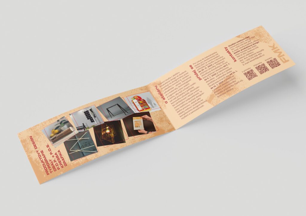 Leták byl vytvořen k příležitosti dne otevřených dveří Univerzity Tomáše Bati ve Zlíně a slouží k propagaci ateliéru produktového designu na Fakultě multimediálních komunikací. Případné budoucí uchazeče o tento obor informuje o náplni studia, termínech podání přihlášky a o průběhu přijímacího řízení; dále obsahuje potřebné kontakty a ukázky některých studentských prací. Designu letáku dominuje červená barva, která je barvou FMK a odlišuje ji od ostatních fakult.