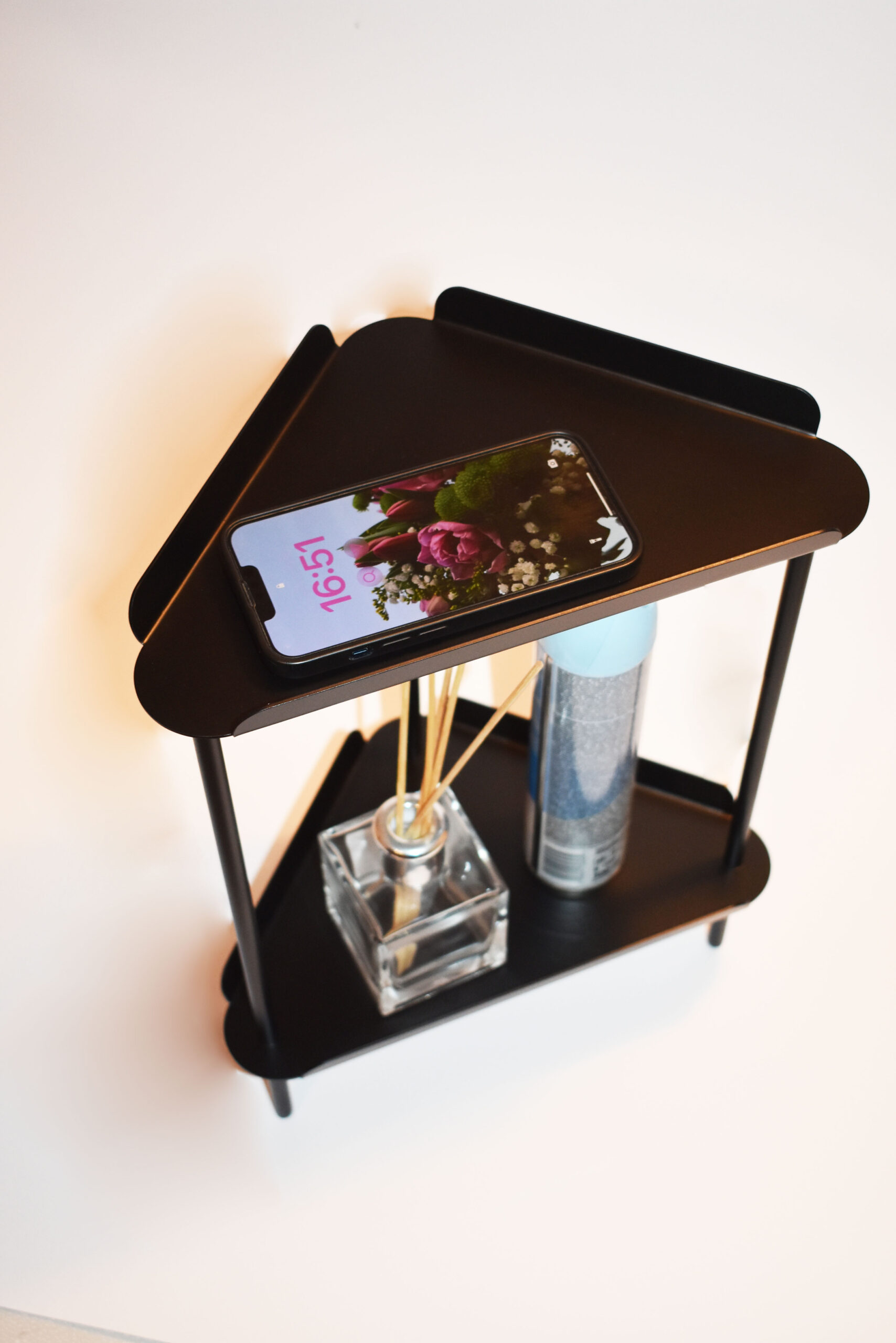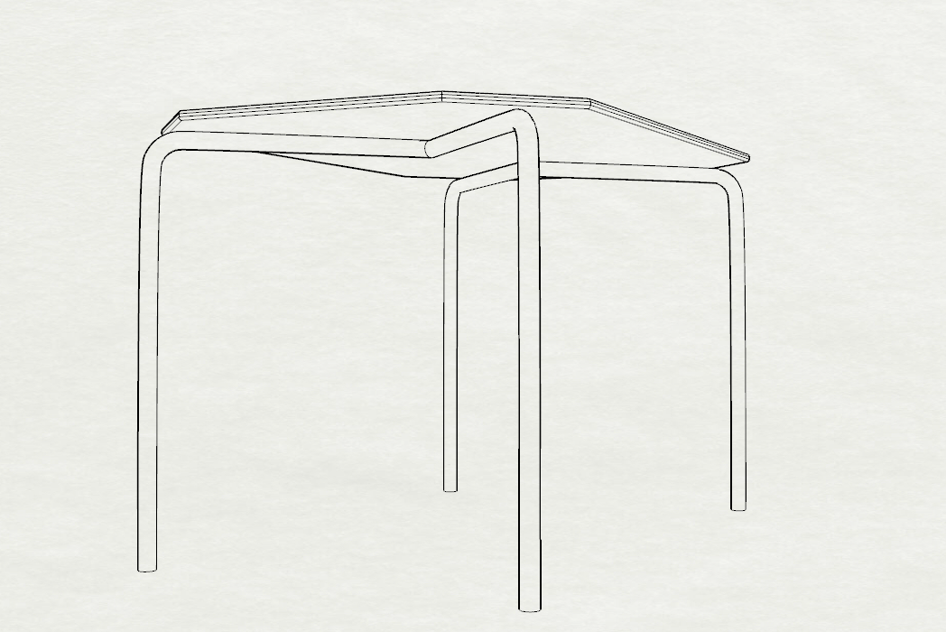 Závěsný držák na pití na pohovku Glostad je inspirovaný industriálním prostředím ateliéru Produktového designu. Je vyroben z ocelového drátu ohýbáním. Touto technikou jsou vyrobeny i podnože stolů tamtéž.