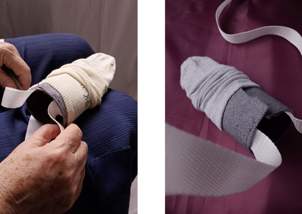 Navlékač ponožek lze ušít přímo doma na šicím stroji a plně jej přizpůsobit vlastnímu vkusu a potřebám.