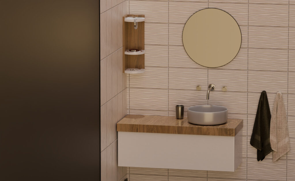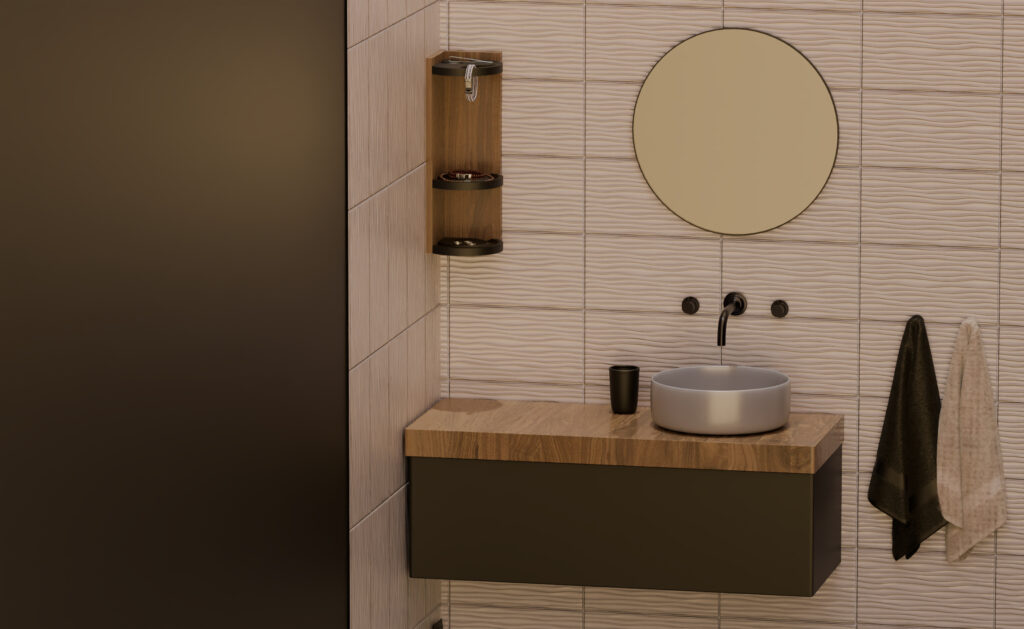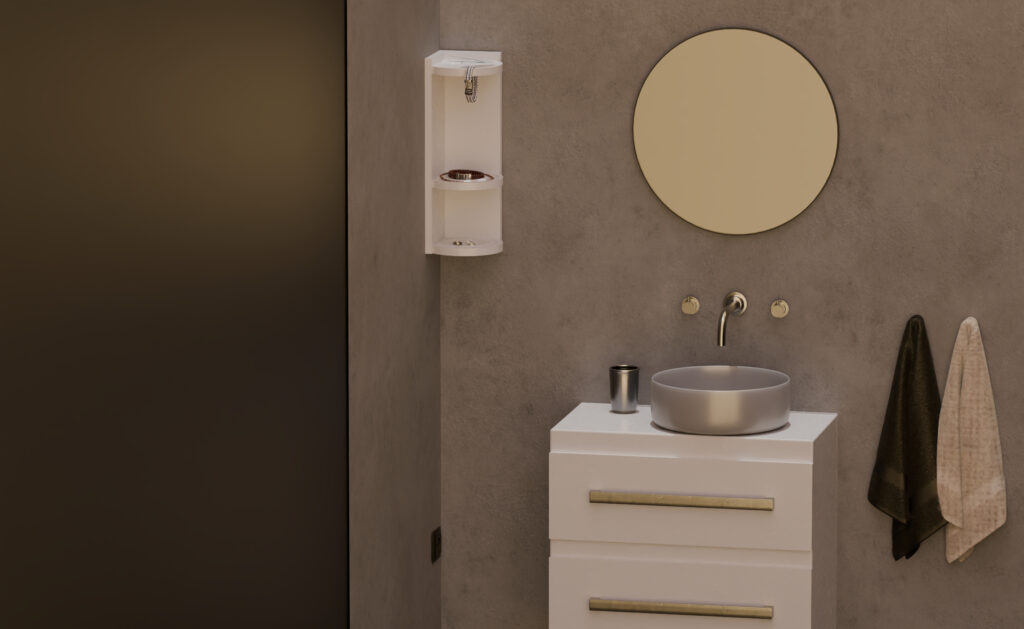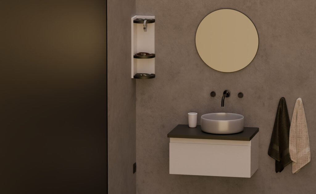 Součástí regálu jsou tři police. Každá z nich je navržena pro zjednodušení manipulace a ukládání šperků v prostředí koupelny.