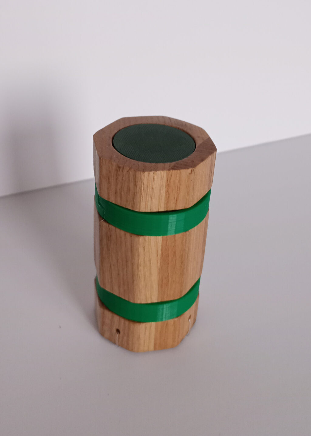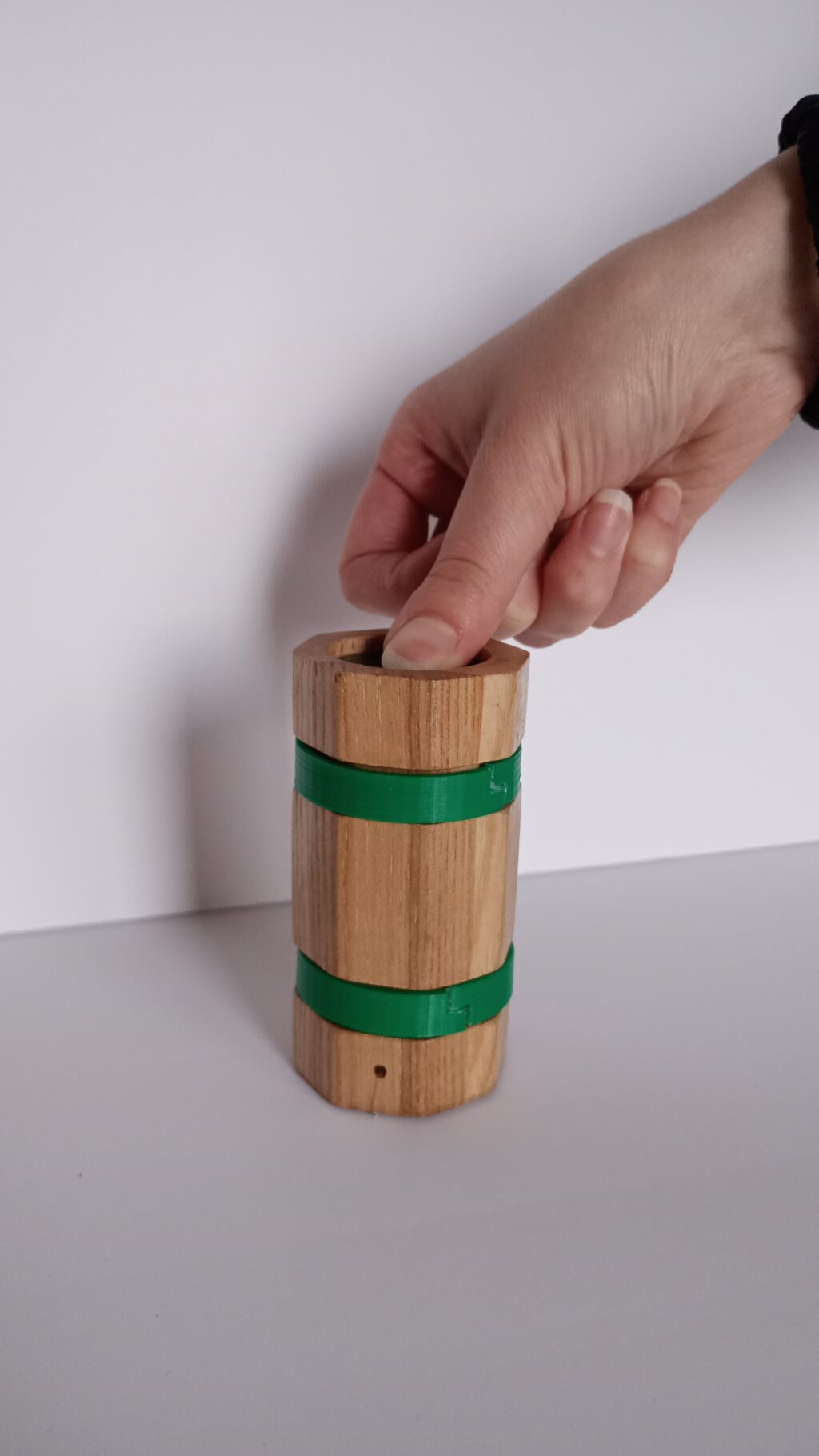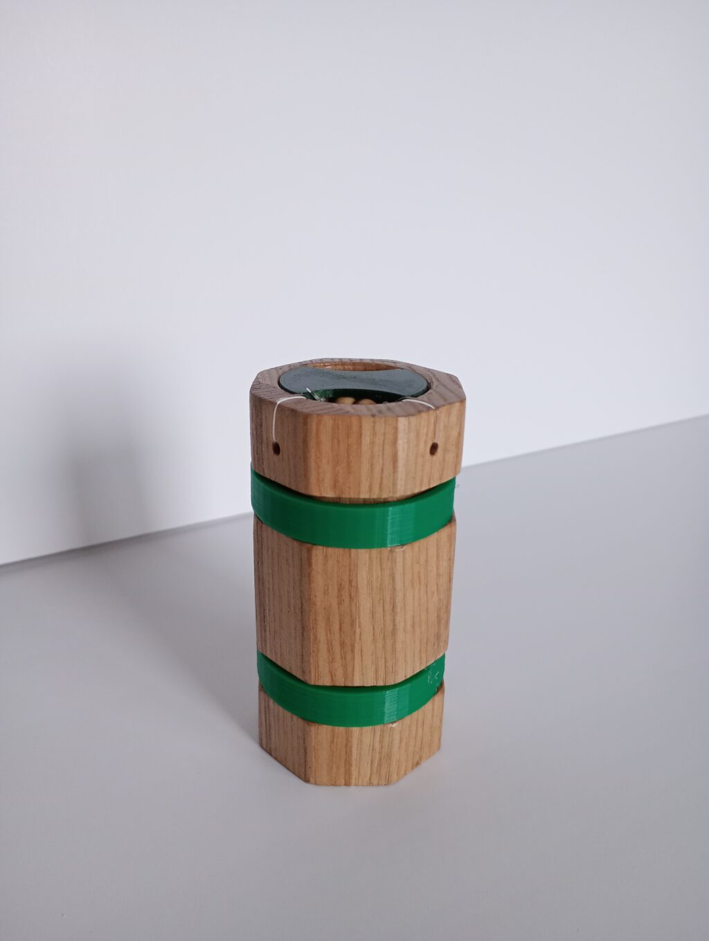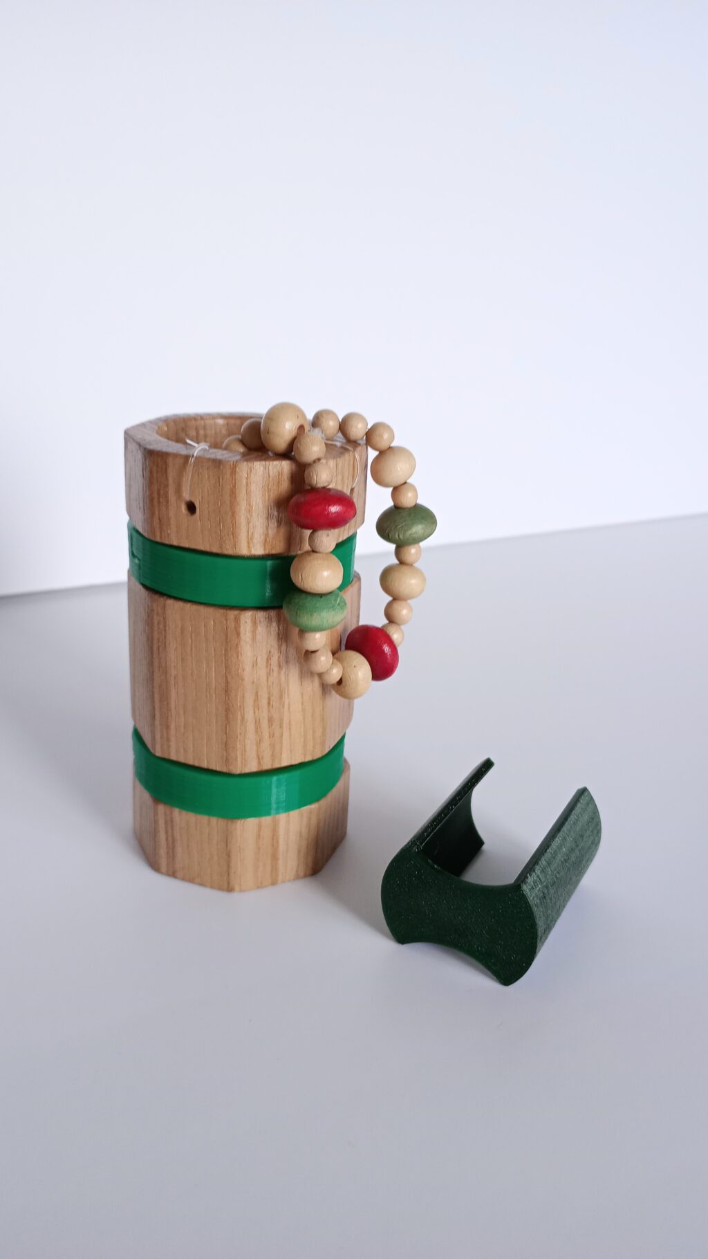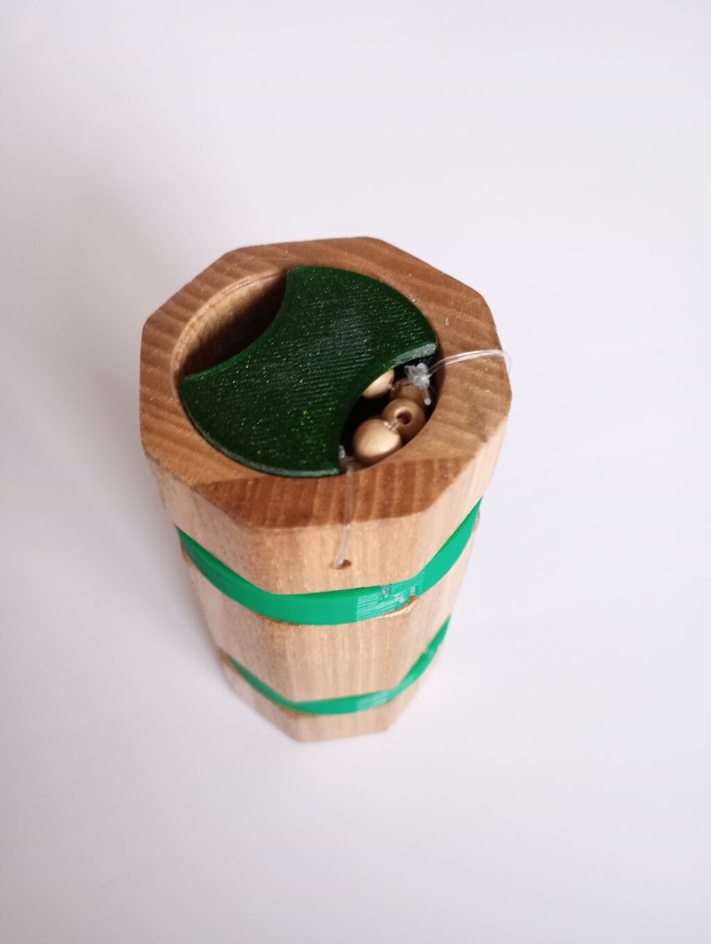Tělo hračky je vyrobeno z jasanového dřeva, korálky jsou rovněž dřevěné. Ostatní komponenty jsou vytištěny na 3D tiskárně.