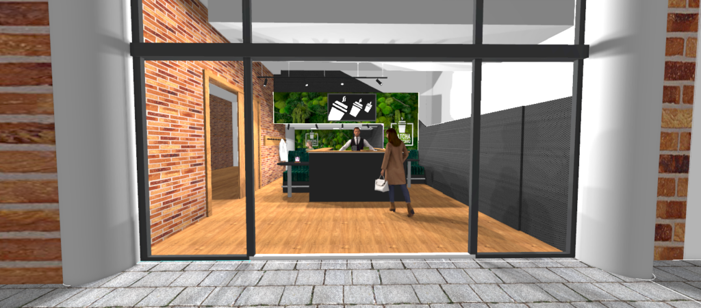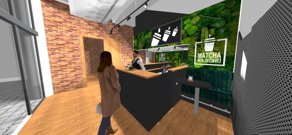 Pôvodné tehlové steny rozprávajú históriu Zlína, zatiaľ čo vôňa matchi prináša novú kapitolu — pomalšiu, vedomejšiu, zelenú, ktorá sa odrazí v podobe atmosférického osvetlenia a stabilizovaného machu. Barový štýl ako prostriedok prezentácie tradičného spôsobu prípravy matchi a väčším počtom miest na sedenie. Logo firmy sa mení a dotvára do konceptu fotokútikov ako ideálny spôsob propagácie prostredníctvom sociálnych sietí.