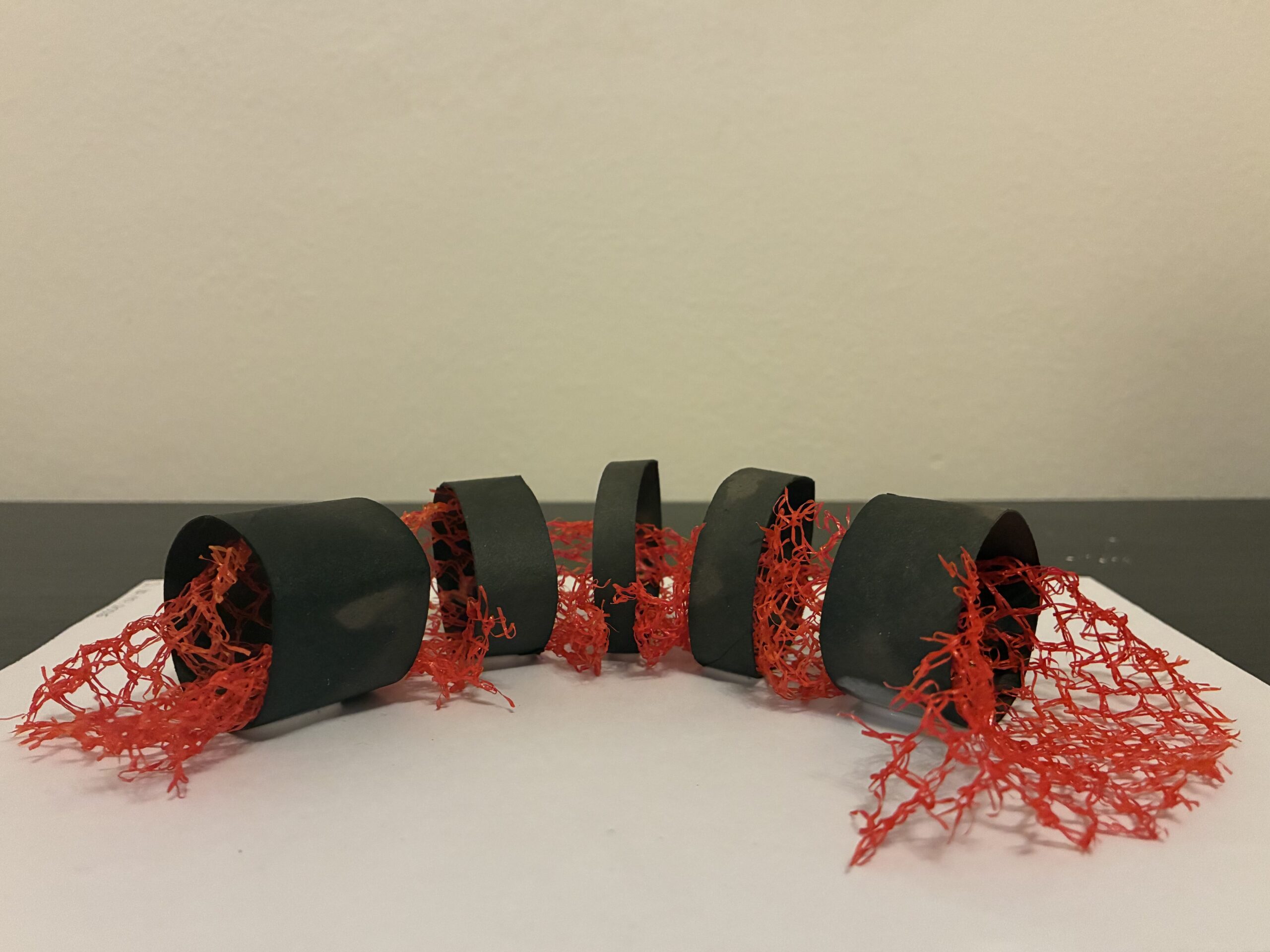 Má práce na téma prostupy se zabývá prostupy mezi generacemi a prostupování jednoho objektu do druhého. Spojením těchto dvou myšlenek mě napadlo vytvořit mezigenerační prolézačku která samostatně funguje i jako socha. Prolézačka je přístupná všem, kdo si stále ještě chtějí hrát i těm kdo si chtějí sednou do stínu a odpočinout si. Já osobně si stojím za myšlenkou toho, že bychom si neměli přestat hrát ani jako dospělí. Finálním výstupem je model prolézačky.