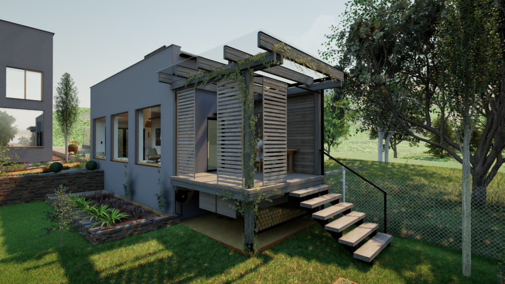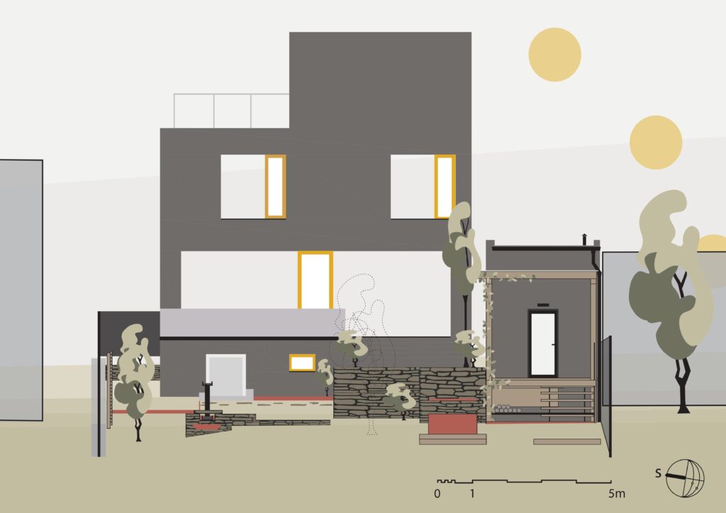 Terasa slúži ako plynulé prepojenie medzi interiérom a záhradou. Poskytuje priestor na oddych, spoločné stretnutia či individuálnu tvorbu pod holým nebom. Je navrhnutá tak, aby v každom ročnom období podporovala kontakt s prírodou.