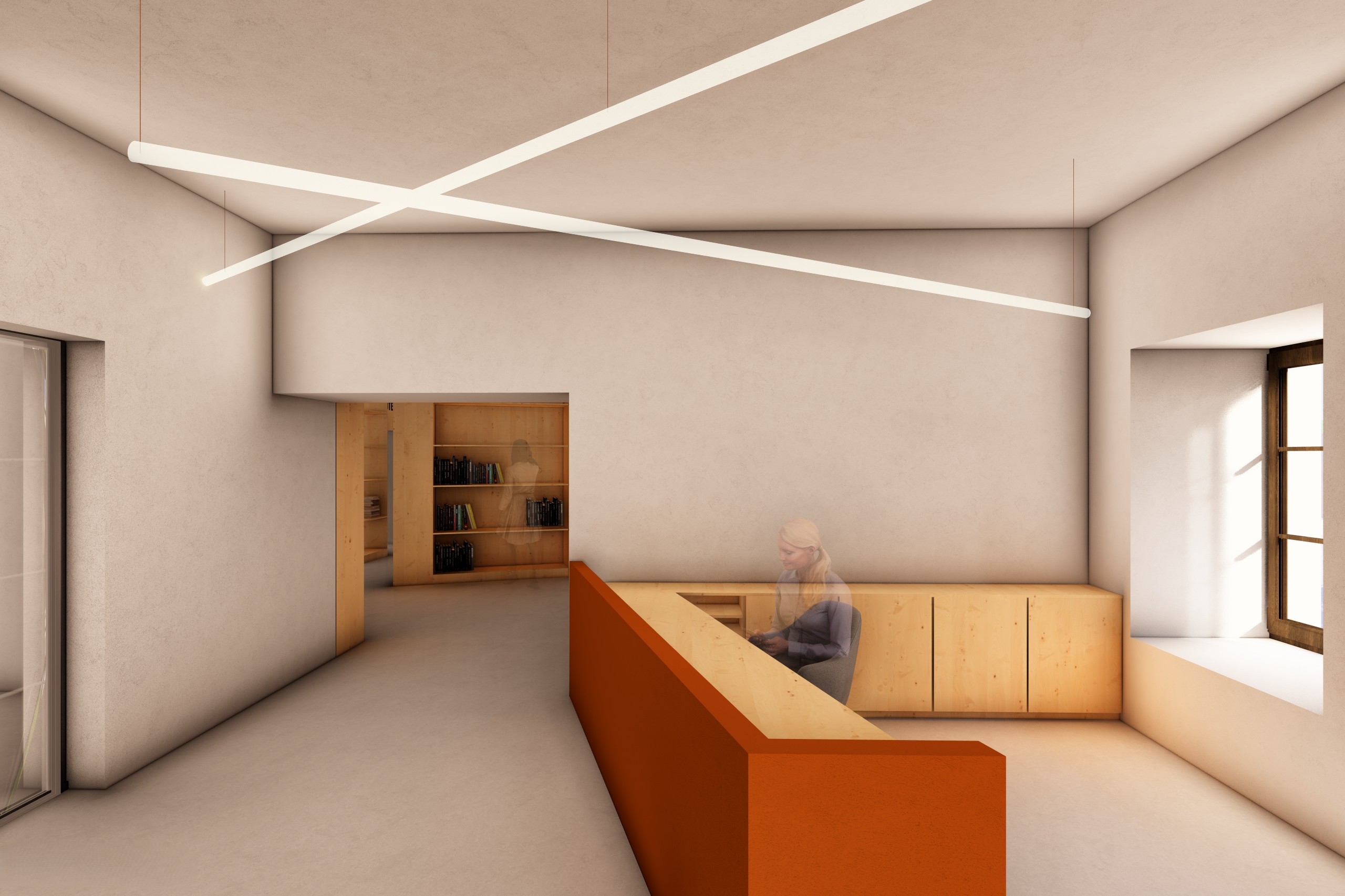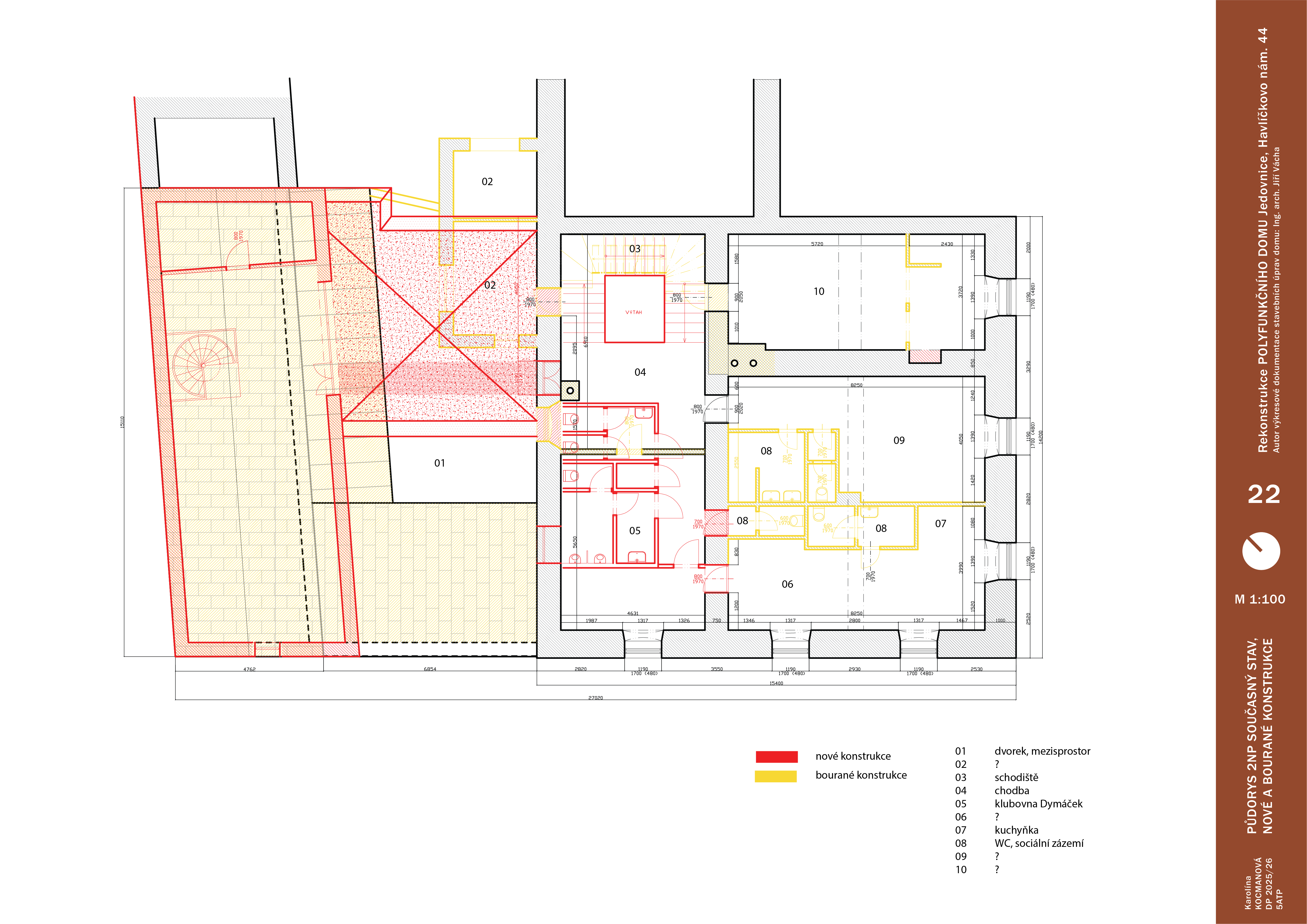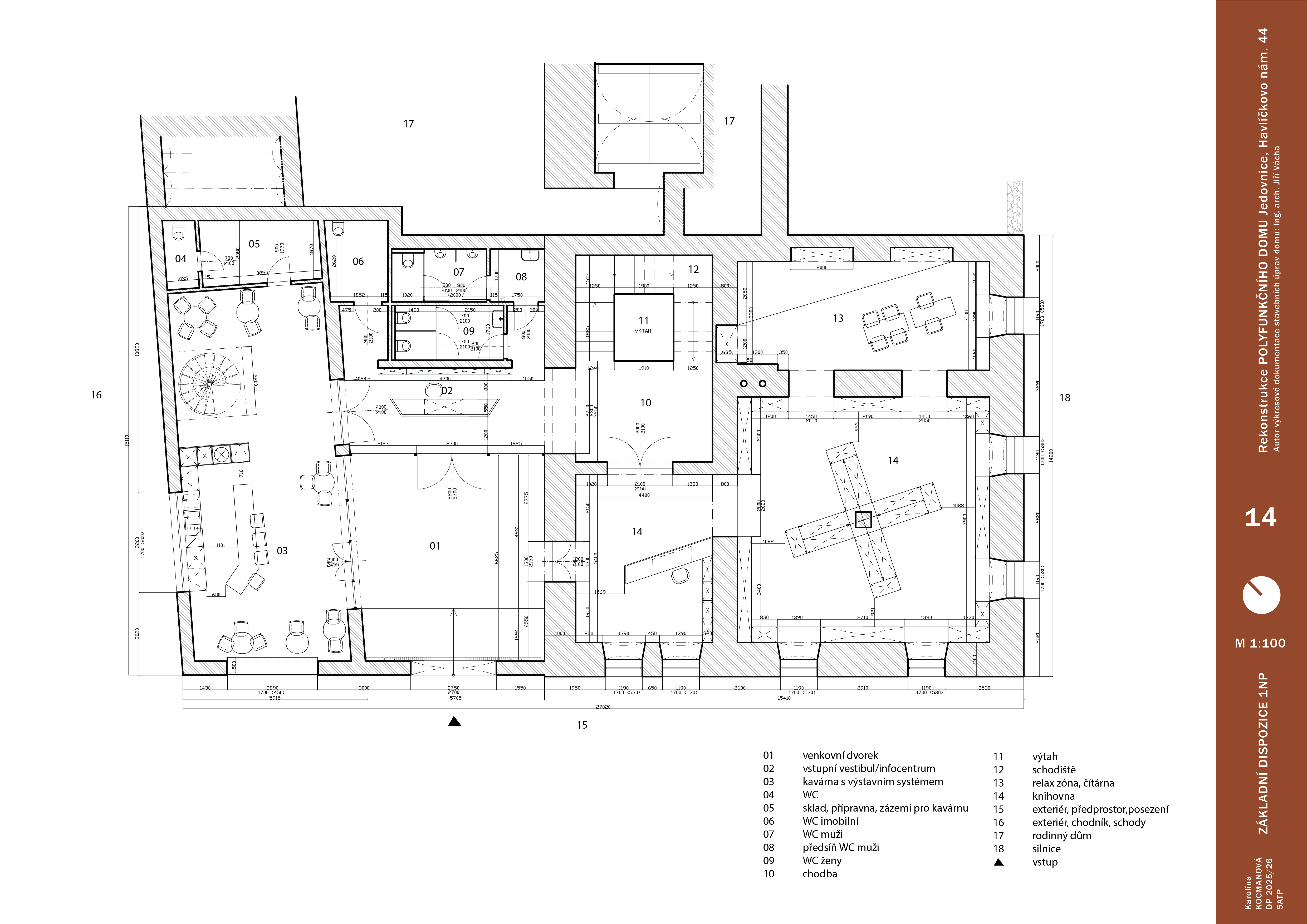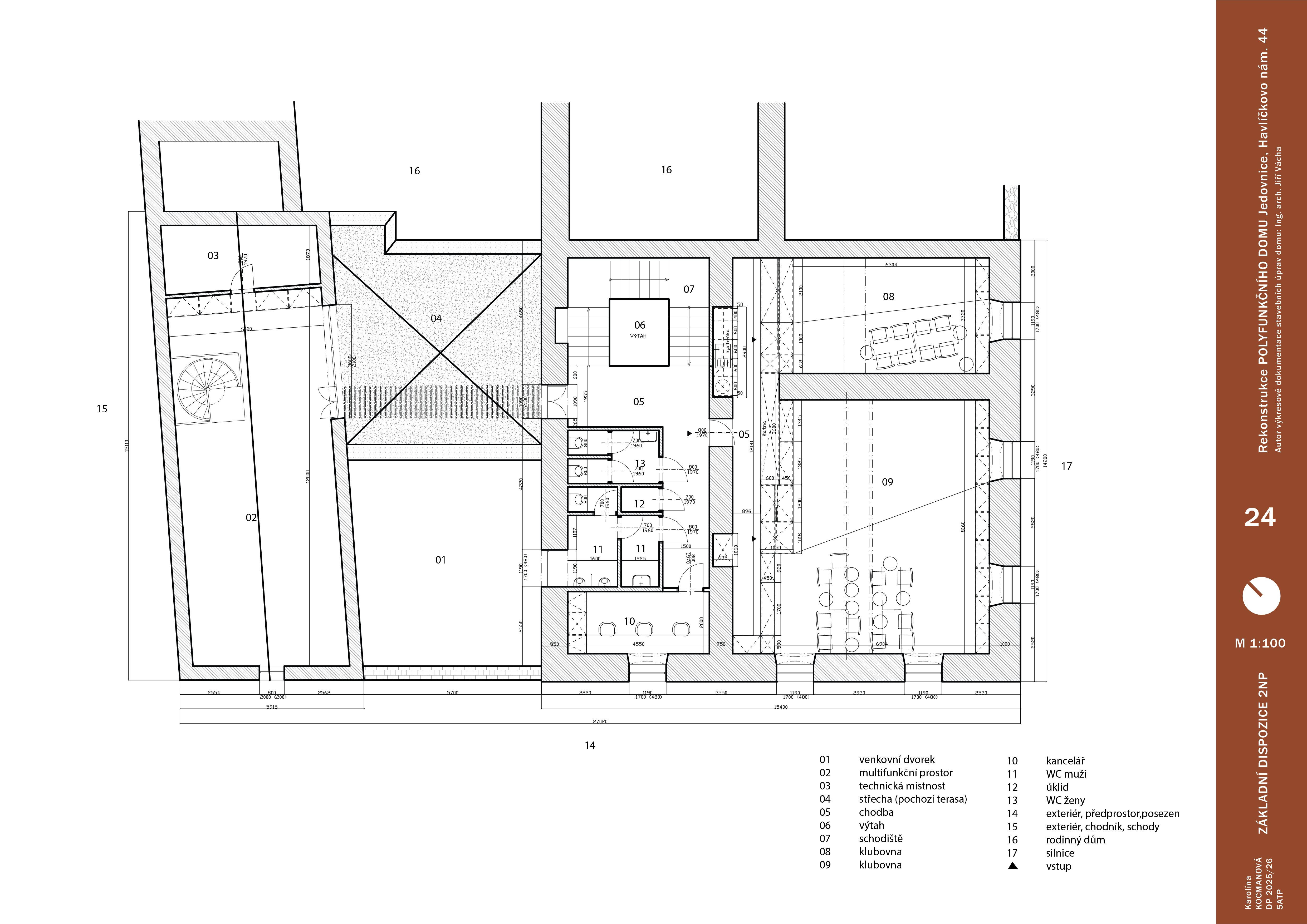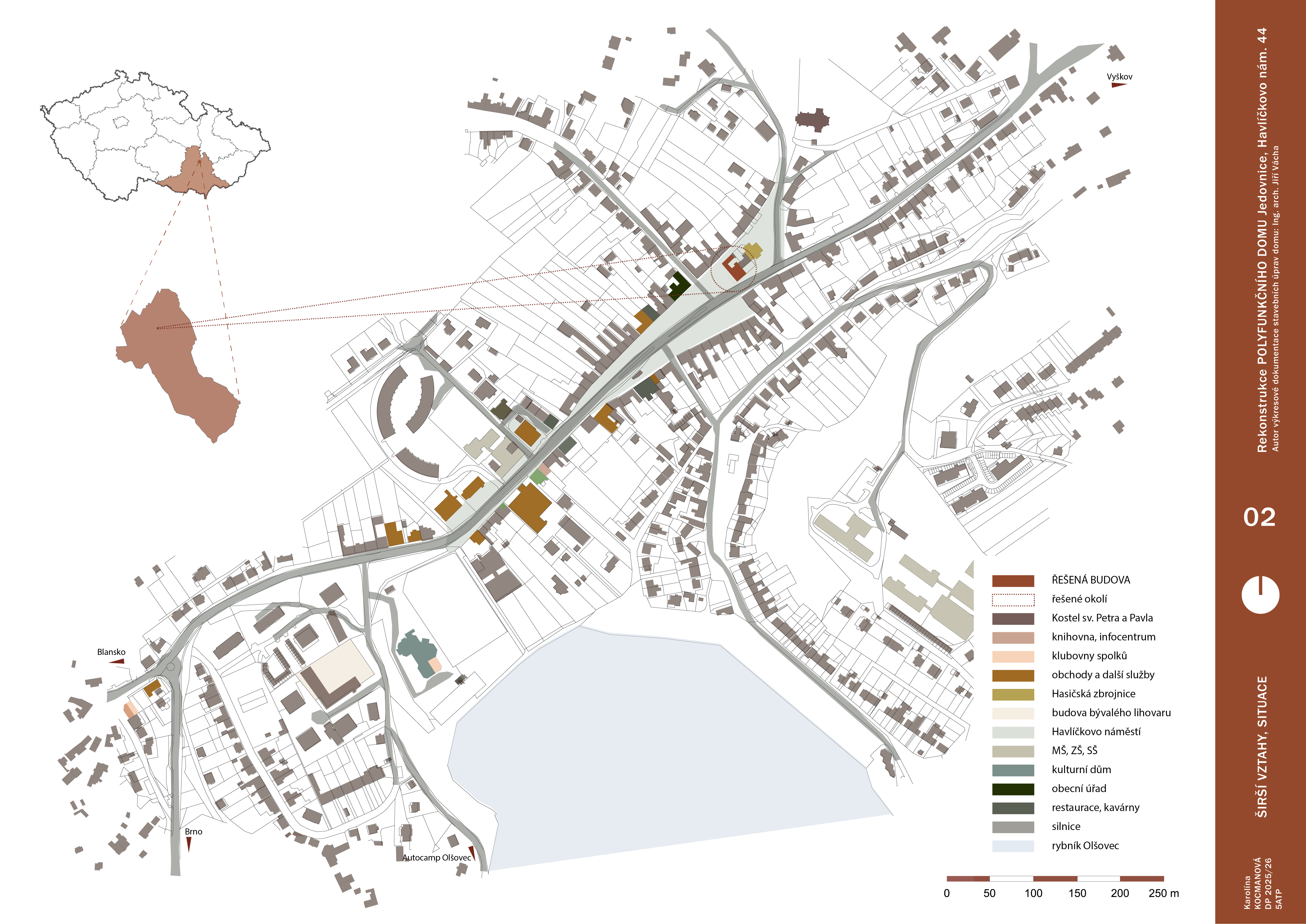 Práce se zabývá rekonstrukcí interiéru historického domu č. p. 44 v Jedovnicích a jeho přeměnou na polyfunkční objekt. Zadání zahrnuje vytvoření obecní knihovny, infocentra, kavárny, výstavního systému, multifunkčních sálů a kluboven spolků. Cílem tohoto projektu se podpoří společensko-kulturní vyžití v obci a vybuduje se zde zázemí pro tvorbu komunity. Prostředkem návrhu práce je vytvořit interiér tak, aby byl lákavý pro obyvatele i turisty, a zároveň respektoval historickou budovu bývalé rychty, pohostinství i jiného využití, které dům měl. V návrhu probíhá dialog mezi starou a novou hmotou objektu. Dotazníkové šetření v obci napomůže k získání názoru a potřeb obyvatel obce a jejich spolků.