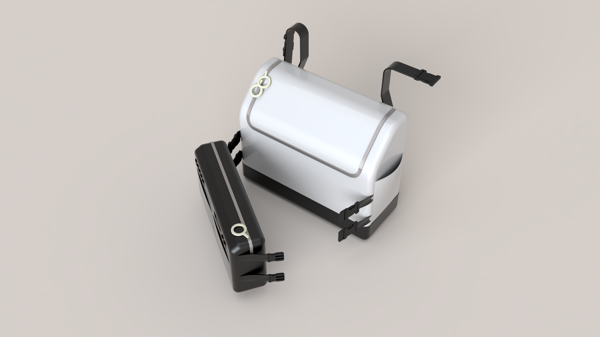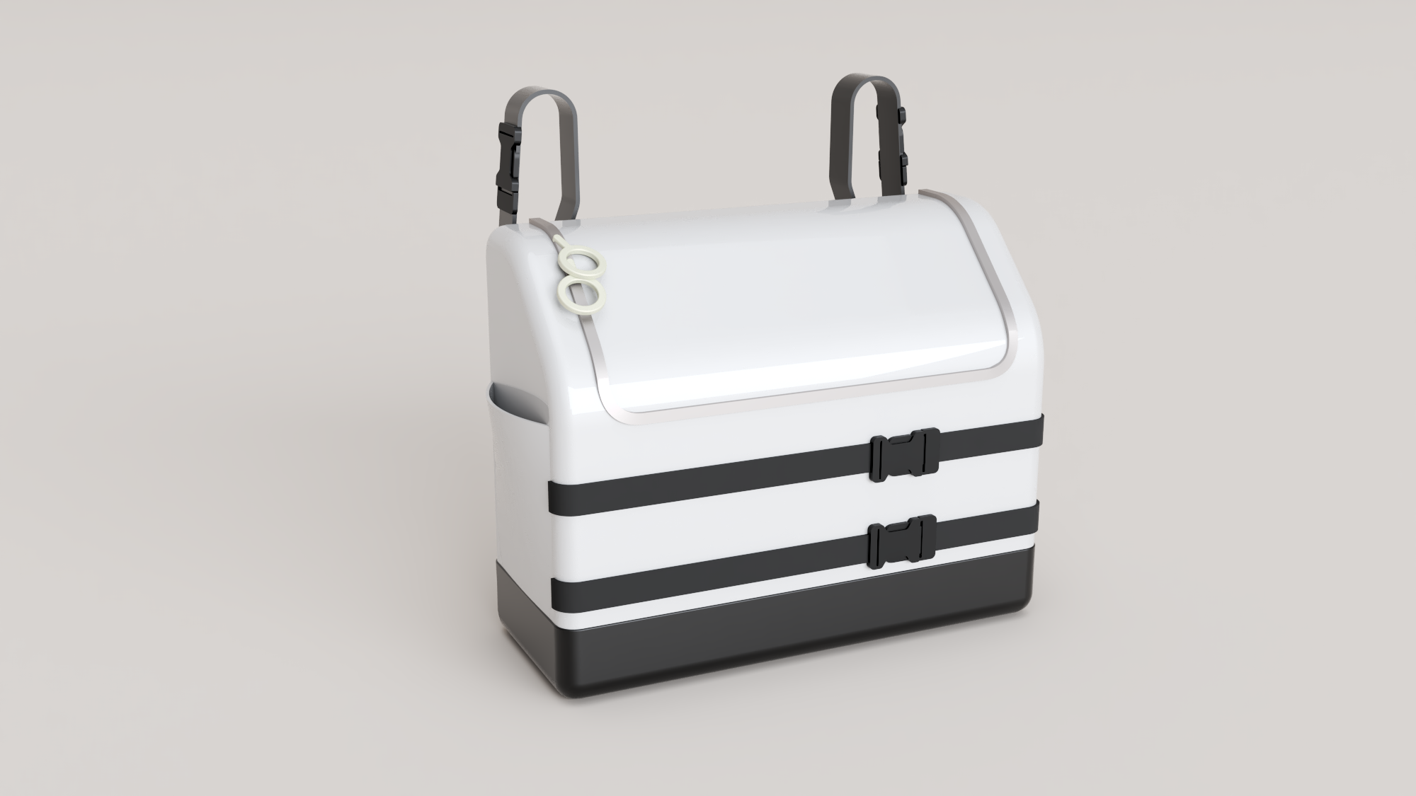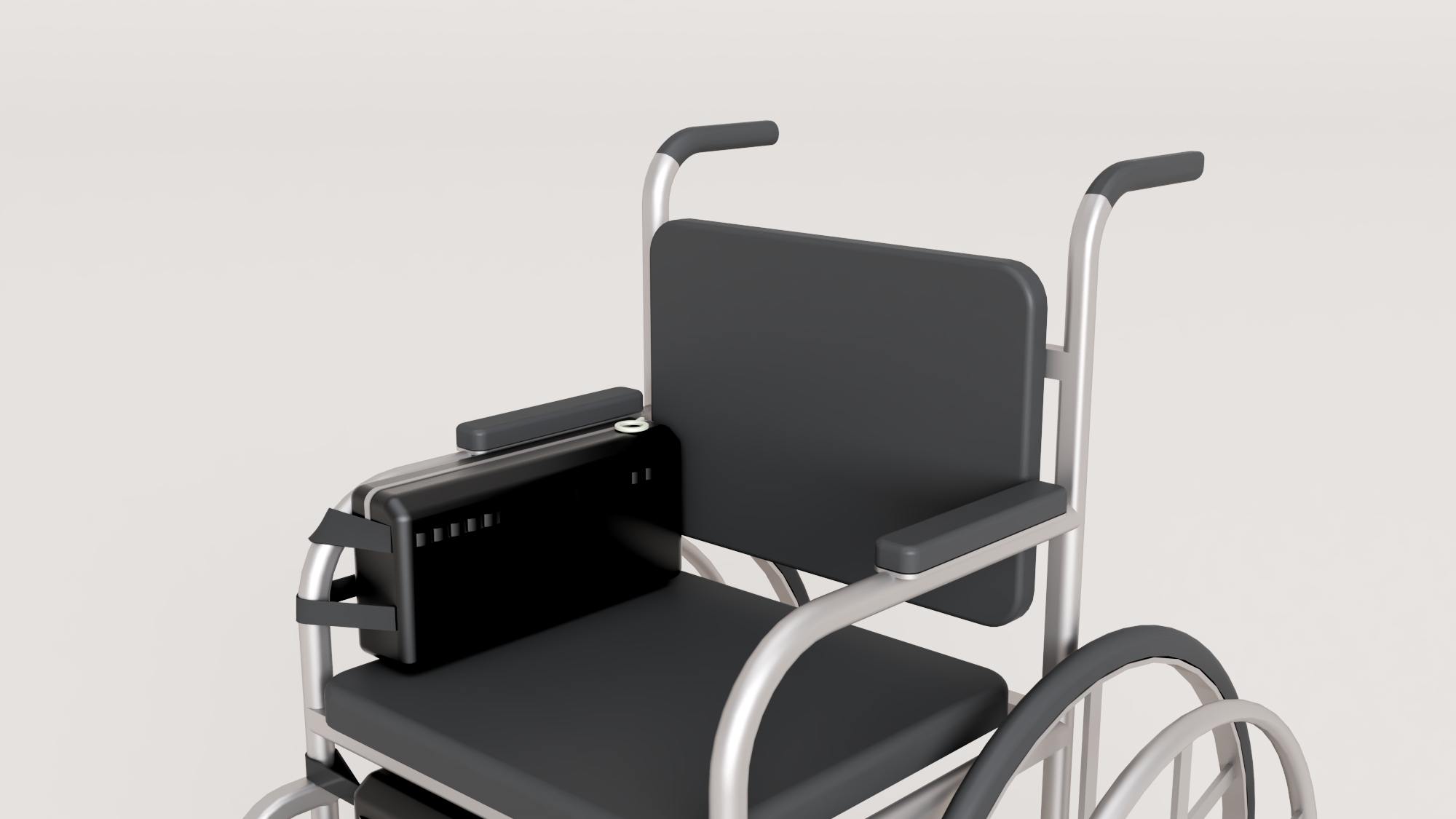 HandiBag is a durable and robust bag designed for all types of wheelchairs. It consists of two parts: a large main bag and a smaller additional bag. Thanks to a system of straps and buckles, the bags can be easily repositioned and their placement changed on the main bag, the side frame of the wheelchair, or near the user’s legs. The straps can also be used to secure other personal items or to further fix the bag to the wheelchair.