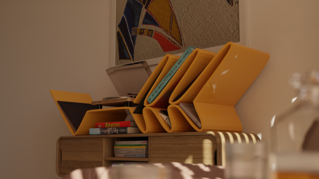 Polica Meander je dizajnérsky výrobok vyvinutý pre spoločnosť Spur a.s. s využitím nového materiálu Hardex. Vychádza z myšlienky reinterpretácie tradičných plochých dosiek prostredníctvom plynulých ohybov a nepretržitých línií. Výsledkom je objekt s výrazným retro nádychom, ktorý si zároveň zachováva moderný a minimalistický charakter. Polica je určená na odkladanie kníh, vinylových platní a ďalších predmetov, pričom jej funkcia presahuje rámec úložného priestoru a stáva sa vizuálnym prvkom interiéru. Možno ju upevniť na stenu alebo voľne umiestniť, čo umožňuje prispôsobiť sa rôznorodým priestorom. Vďaka flexibilnému tvaru sa hodí do otvorených aj kompaktných miestností, čím prináša všestranné využitie. Meander tak nie je len úložným riešením, ale aj vizuálnou dominantou, ktorá do každodenného prostredia vnáša sochársku formu, jemnú eleganciu a osobitý dizajnový jazyk.
