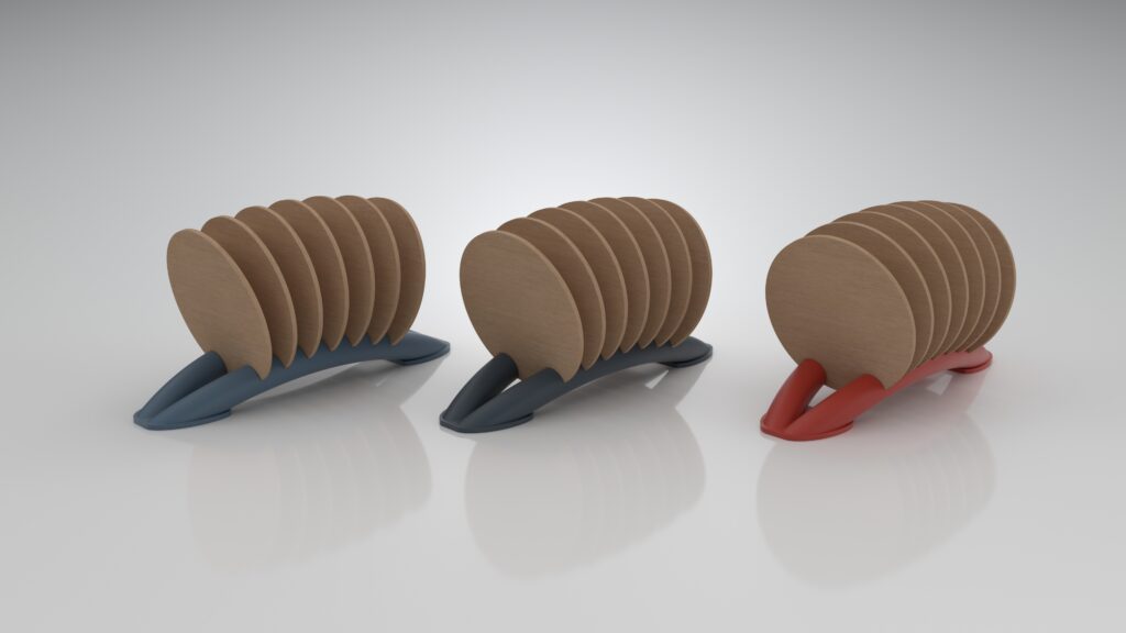 Stojánek na podtácky TONI je elegantním doplňkem ke stolování. Pojme 7 podtácků a najde využití doma i v restauraci. Funkčnost a estetika se snoubí s udržitelností. Produkt vznikl přetvořením odpadního materiálu z nábytkářské firmy TON.